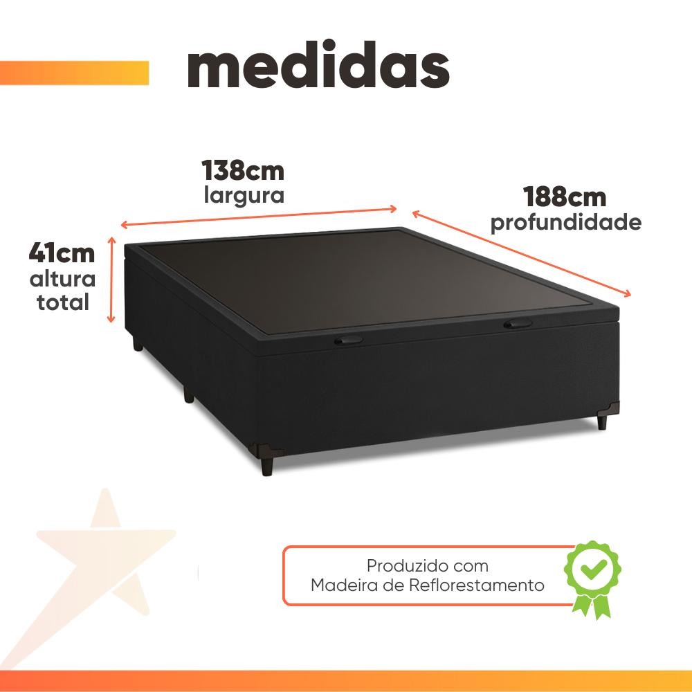 Cama Box com Baú Casal com 41cm de Altura Prince Preto