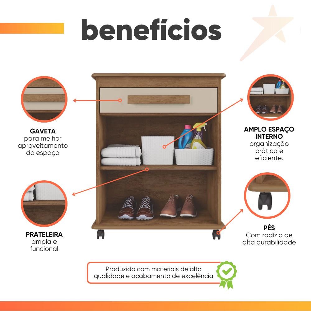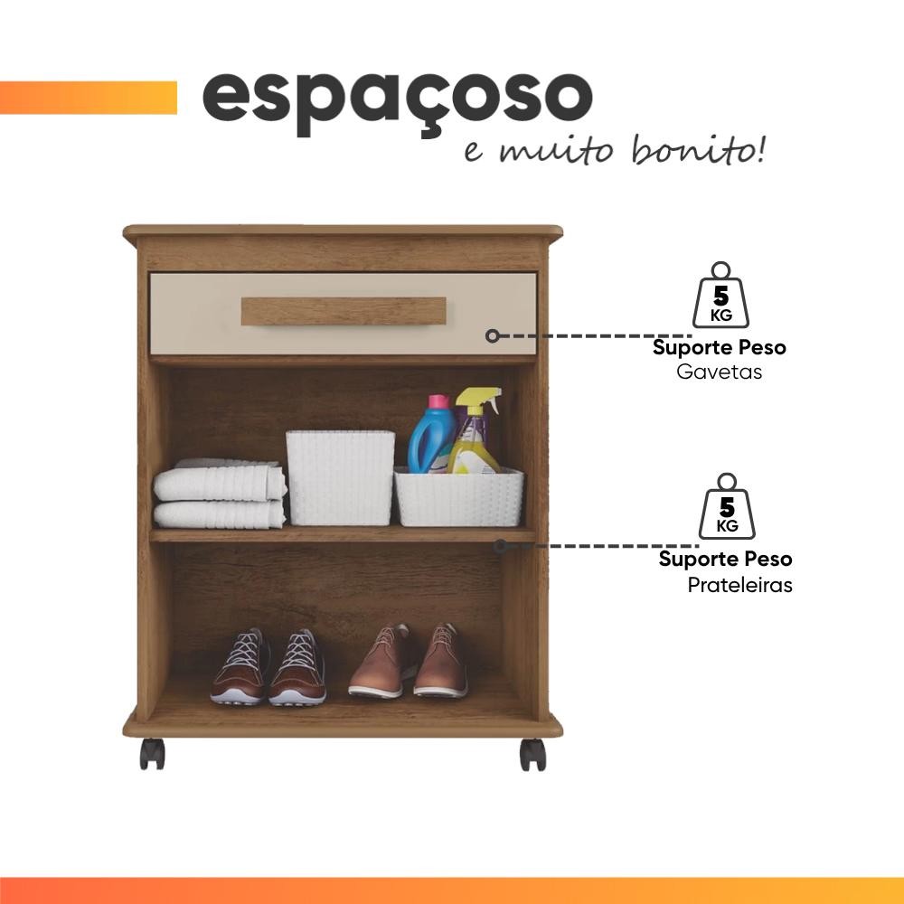 Armário Balcão Multiuso 2 Portas 1 Gaveta com Rodízios Chile Cinamomo/Off White RV Móveis