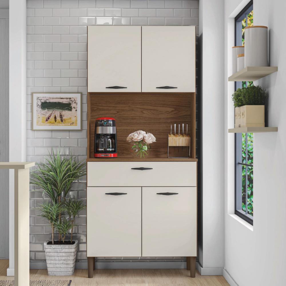 Armário de Cozinha Completa 4 Portas 1 Gaveta Cris Nogueira / Off White Kit's Paraná
