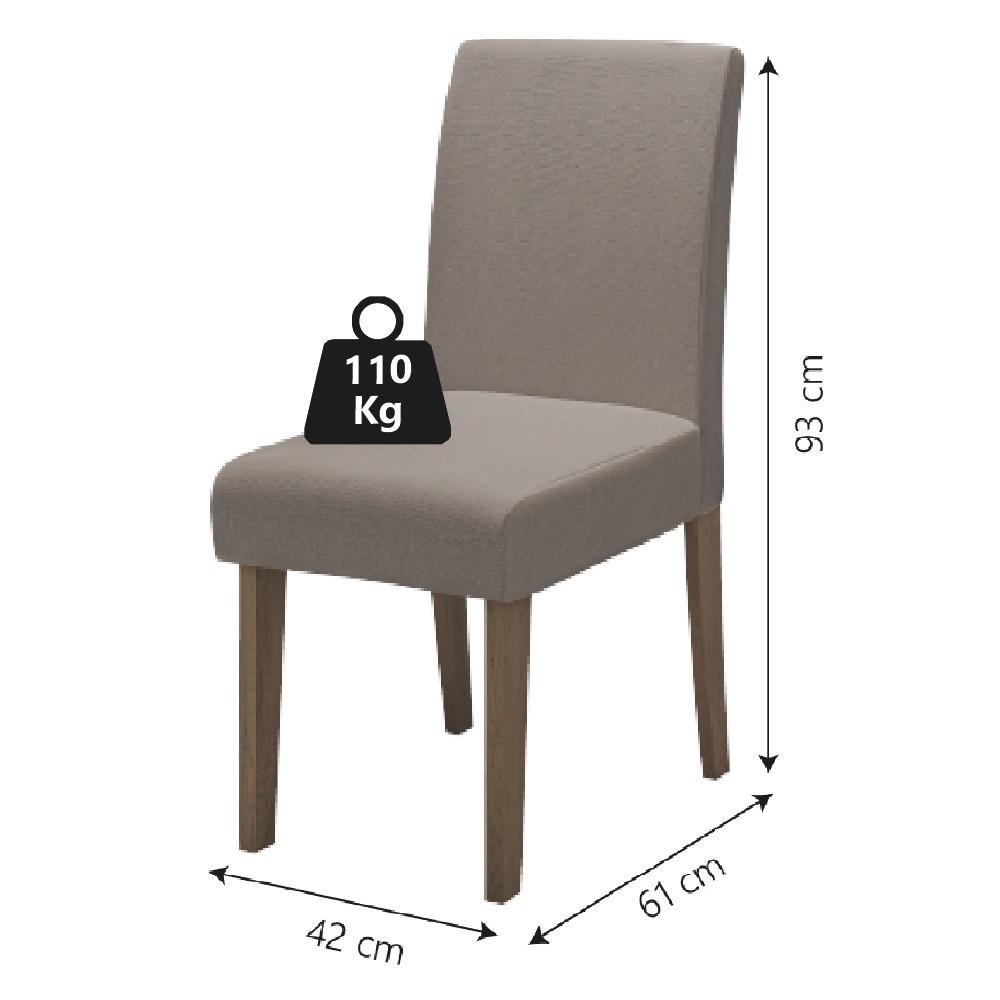 Conjunto Com 4 Cadeiras Estofada Sala de Jantar Trieste Siena Cedro / Mascavo Dobuê