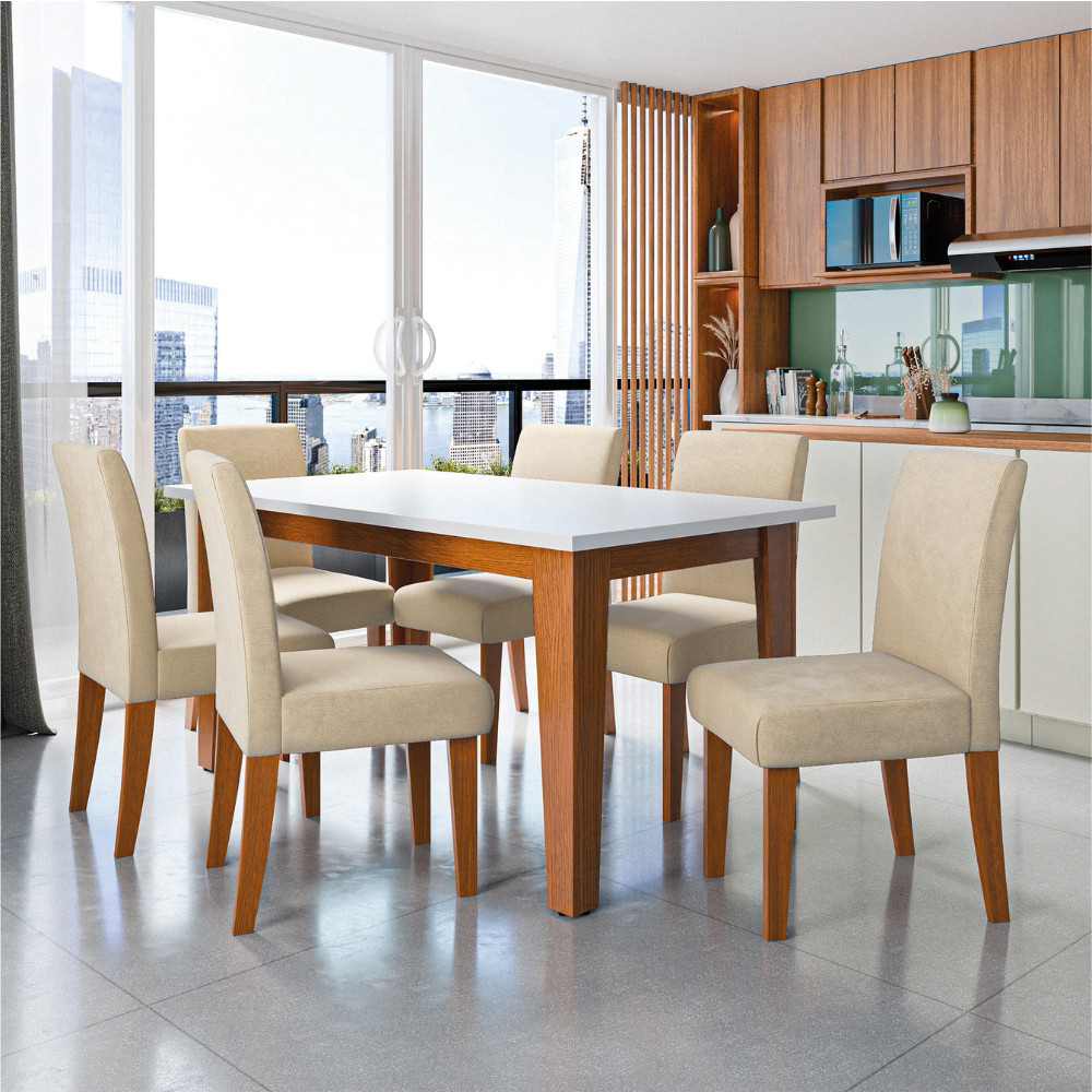 Conjunto Sala de Jantar Mesa Miami 1,60m 6 Cadeiras Trieste Dobuê