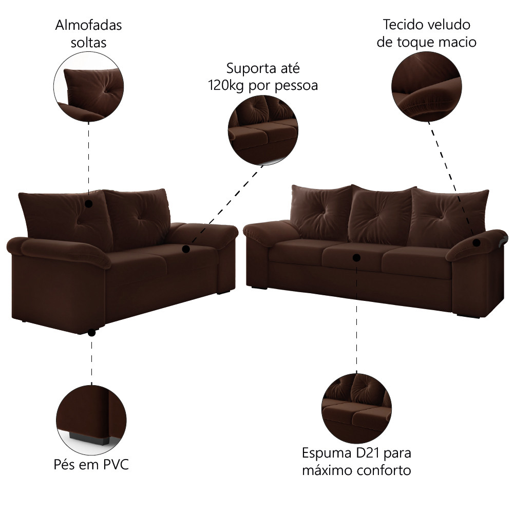 Conjunto de Sofá 2 e 3 Lugares Taurus Veludo Mamflex