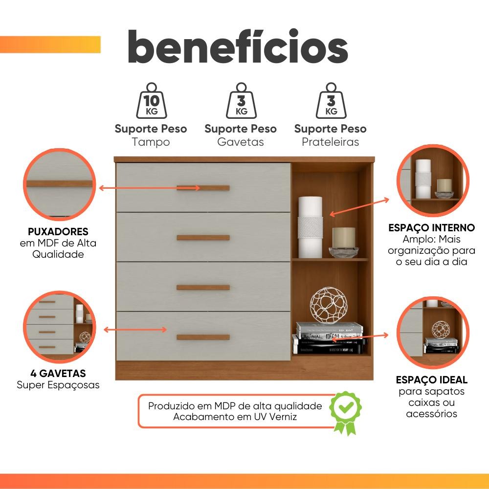 Cômoda Sapateira 4 Gavetas 1 Porta Genova Plus Zanzini