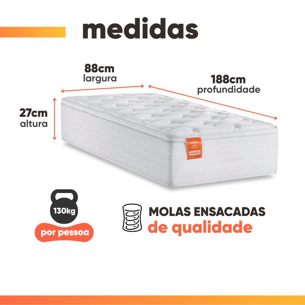 Cama Box Colchão Solteiro Molas Ensacadas Real 88x188x65cm Branco / Cinza Inducol - Suporta até 130kg por Pessoa