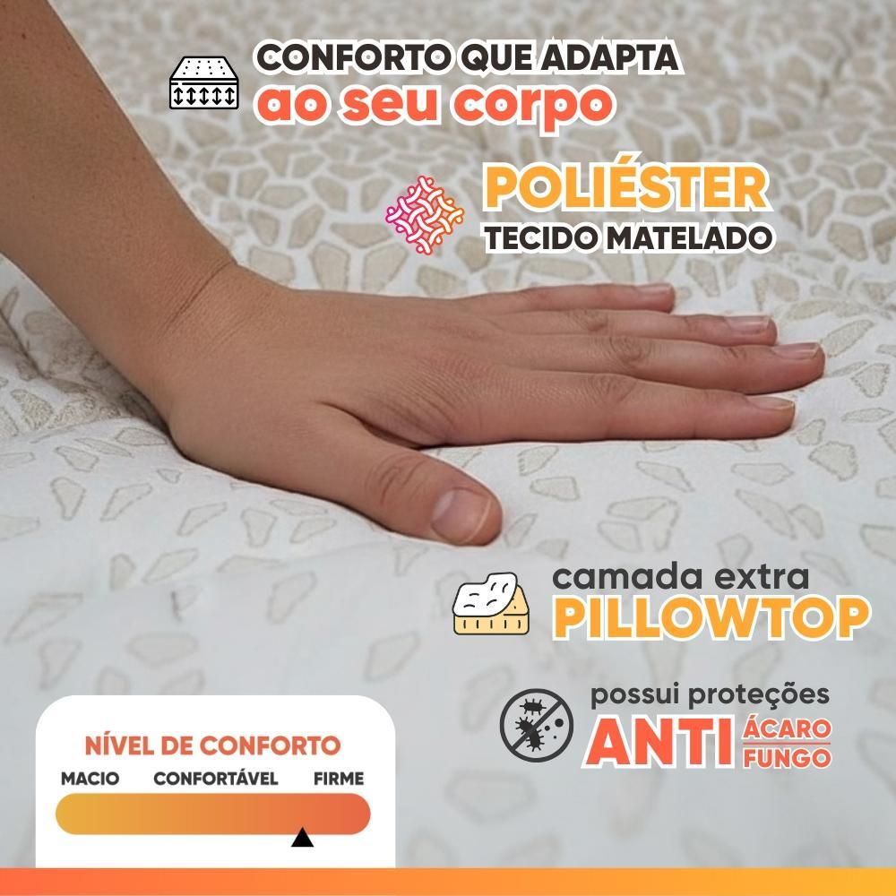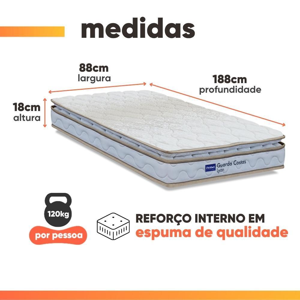 Cama Box Baú Solteiro Probel Espuma D33 Pillow Top 88x188x59cm Guarda Costas Lyon Branco/Bege