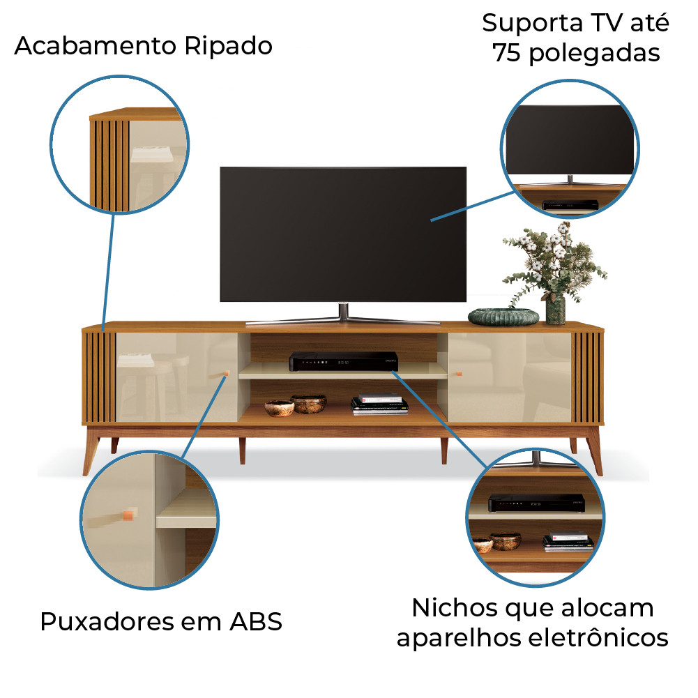 Rack Bancada Para Sala TV Até 75 Polegadas Legacy Cedro / Off White