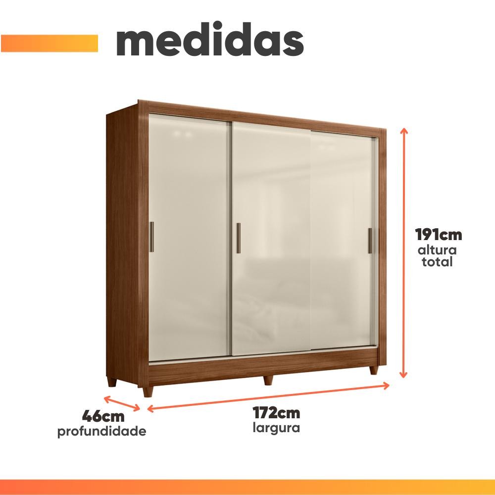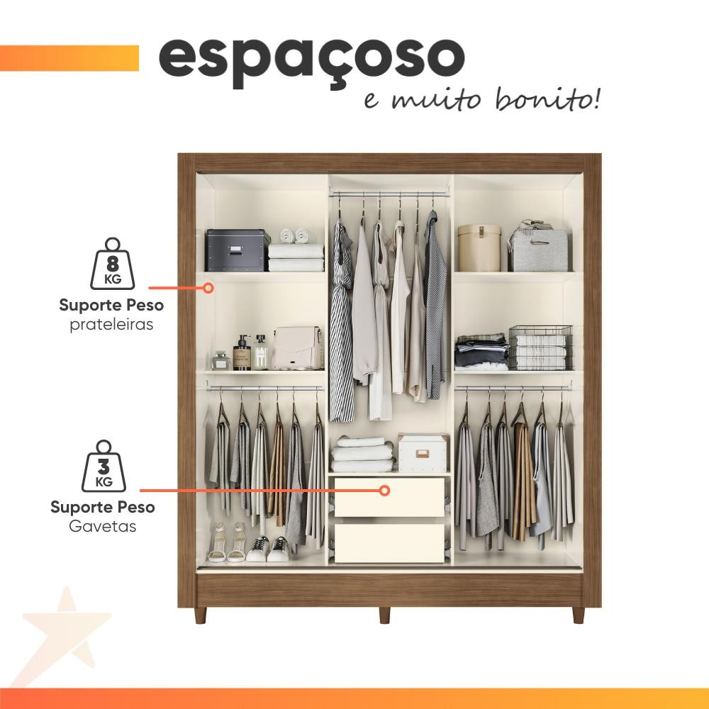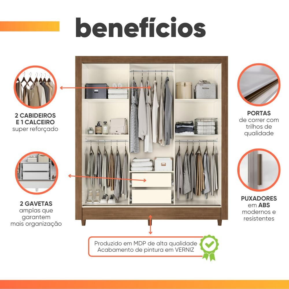 Guarda Roupas Casal com 3 Portas de Correr 2 Gavetas França Andirá