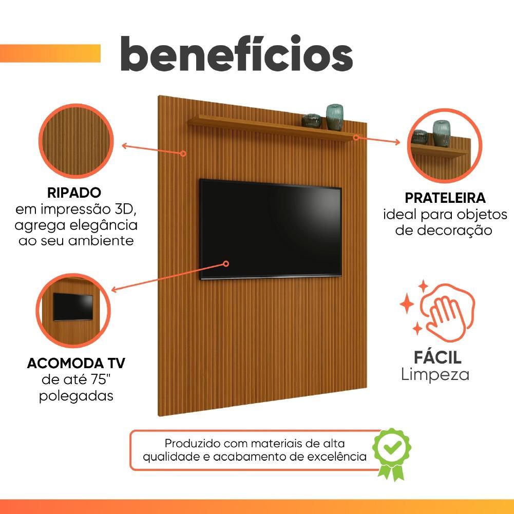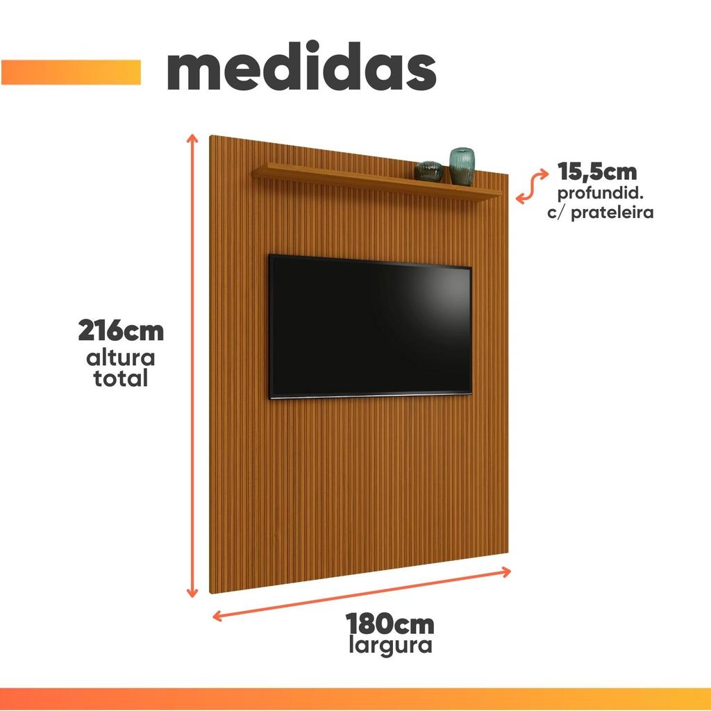 Painel Para Tv Até 75 Polegadas Ripado Impressão 3D Egeo Com Prateleira 1,80m Cedro EDN