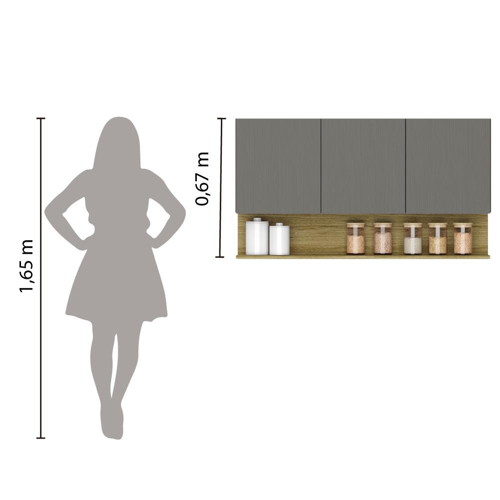Armário Aéreo de Cozinha 3 Portas com Nicho 1,20m Freijó / Cinza Line Kits Paraná