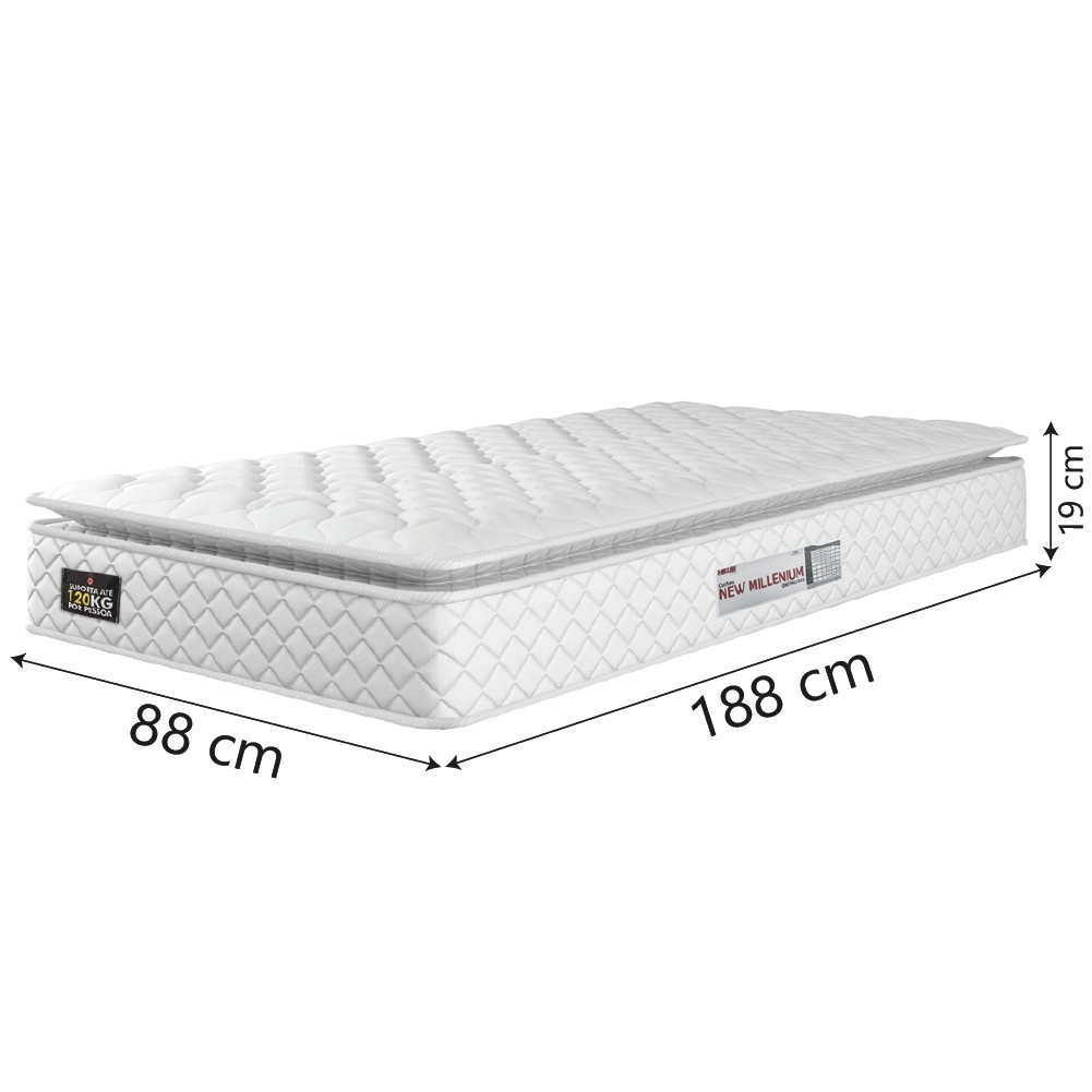 Cama Box Baú Solteiro Colchão Espuma D33 Pillow Top New Millenium 88x188x60cm Branco Linho Hellen