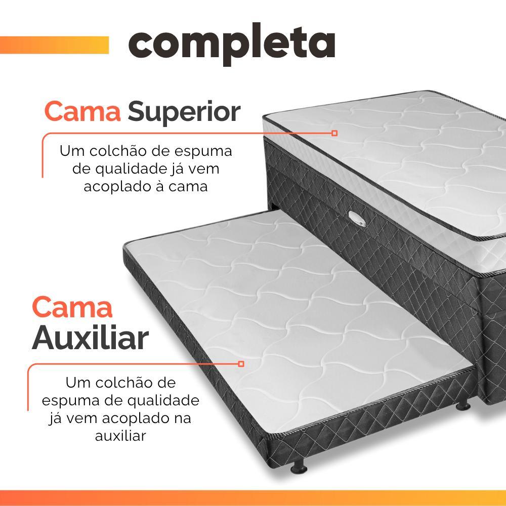 Cama Bibox com Baú Solteiro Ortopédica com Cama Auxiliar Conjugada 88x188x51cm Gabi