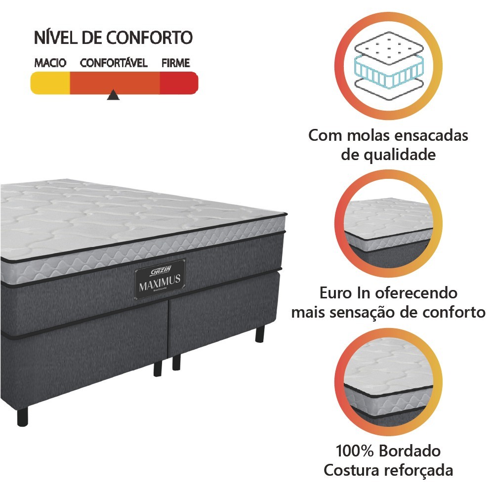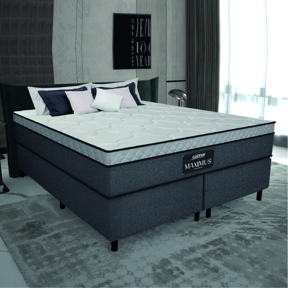 Cama Box Casal Queen Colchão Gazin Maximus Molas Ensacadas 158x198x62cm Linho Grafite / Preto