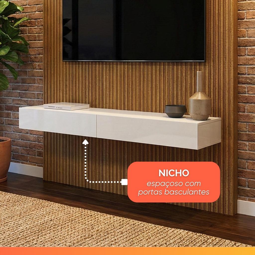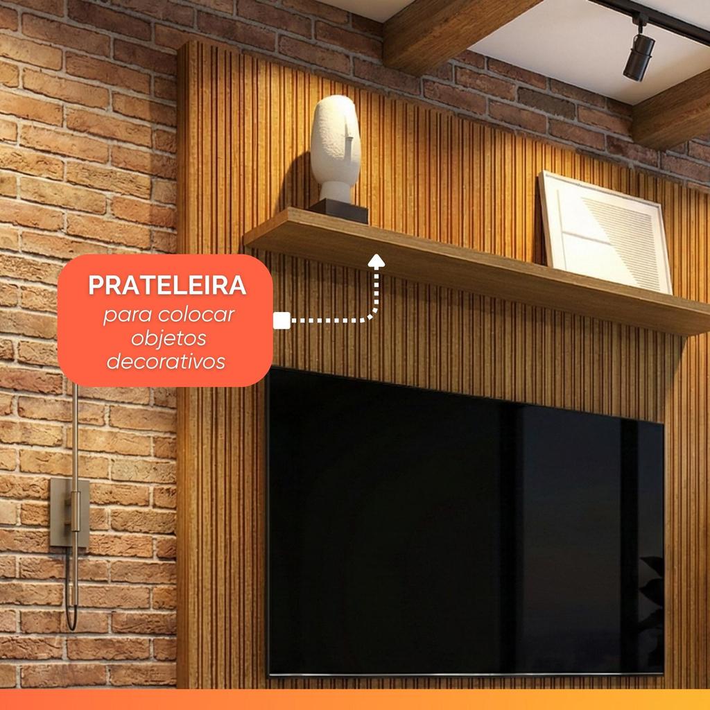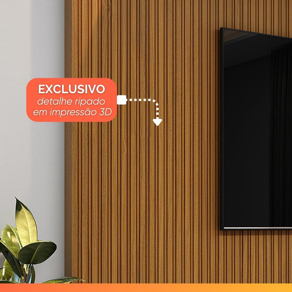 Painel Para Tv Até 55 Polegadas Ripado Impressão 3D Egeo Com Nicho 1,35m Cedro Off White EDN