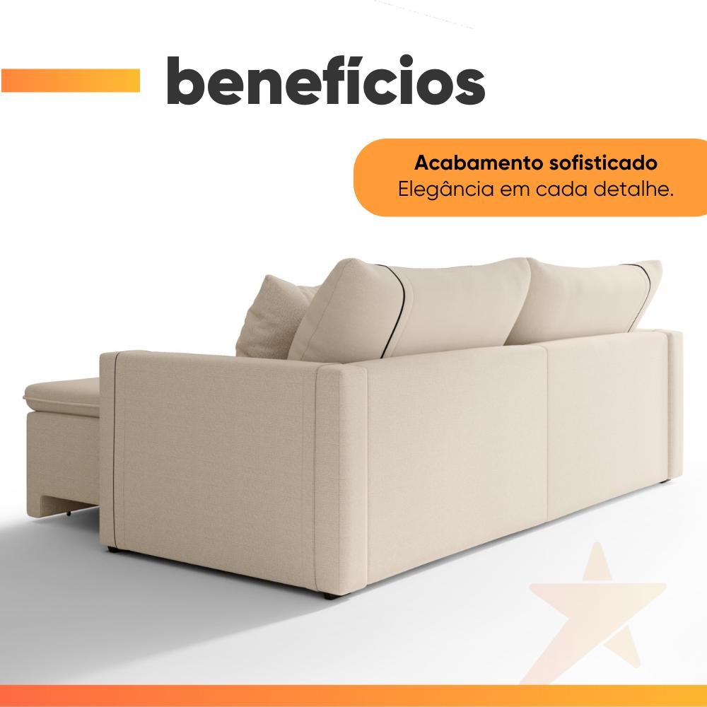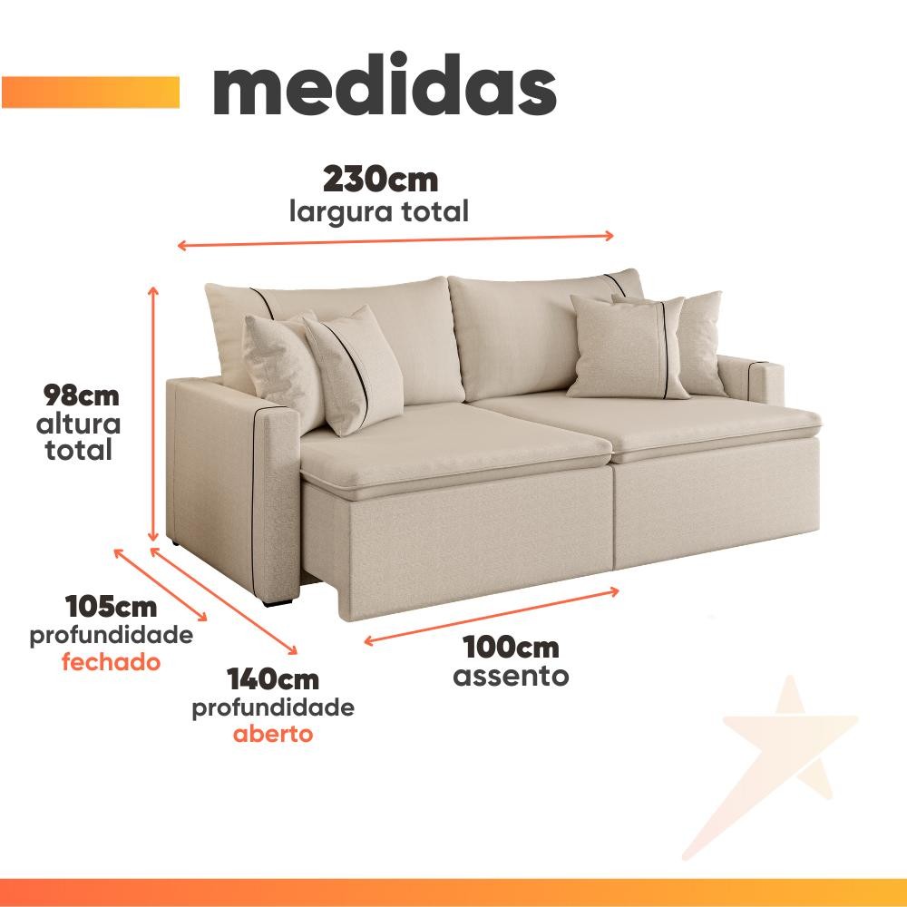 Sofá Cama Retrátil 4 Lugares 2,30m com Almofadas Linho Focus
