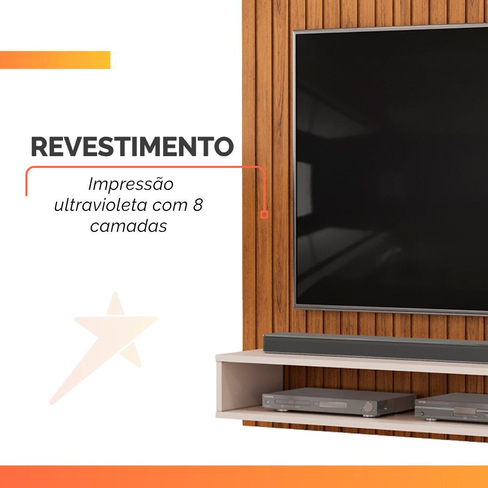 Painel Para TV Até 55 Polegadas Detalhe Frisado Com Prateleiras Hope Madeirado/Off White