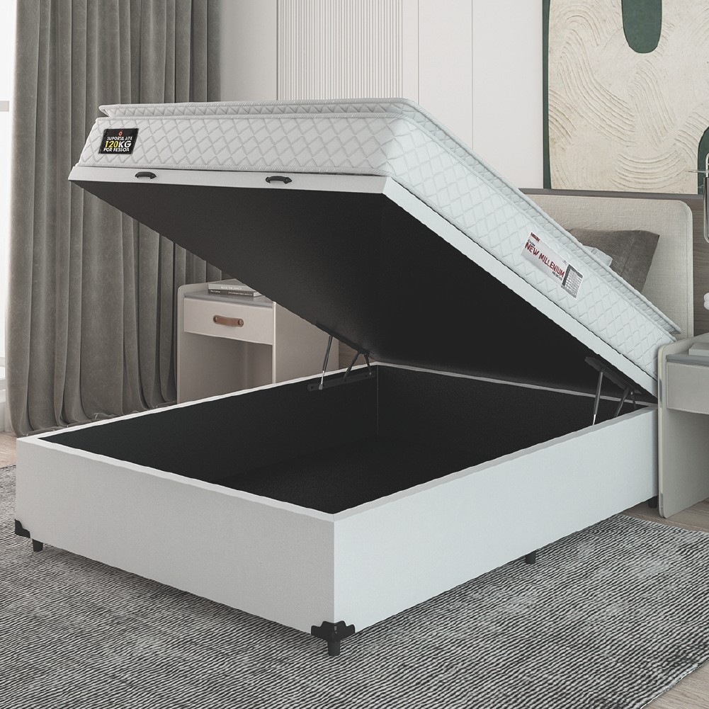 Cama Box Baú Casal Colchão Espuma D33 Pillow Top New Millenium 138x188x60cm Branco Linho Hellen