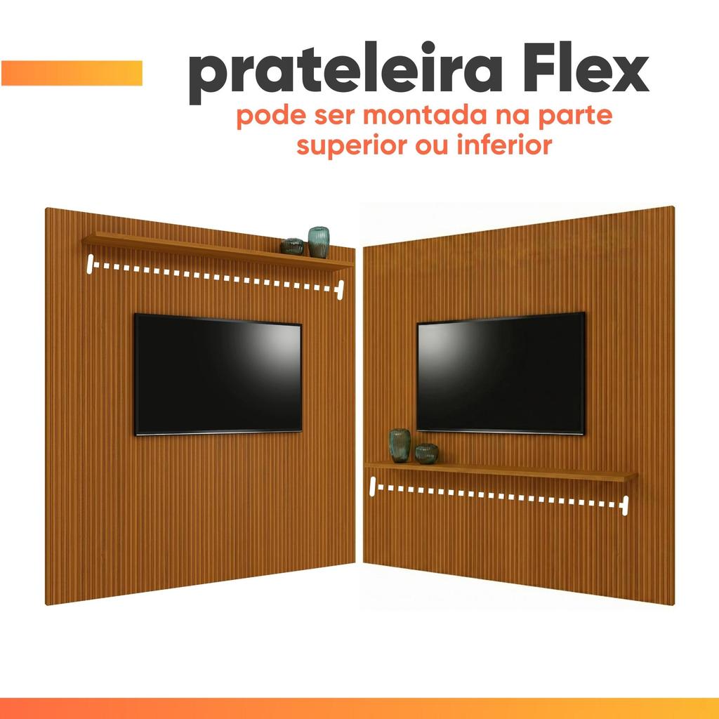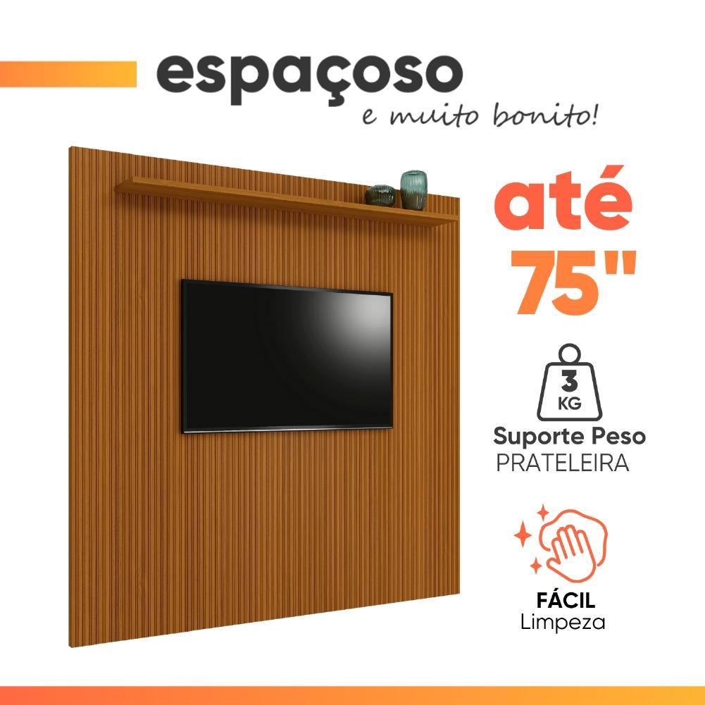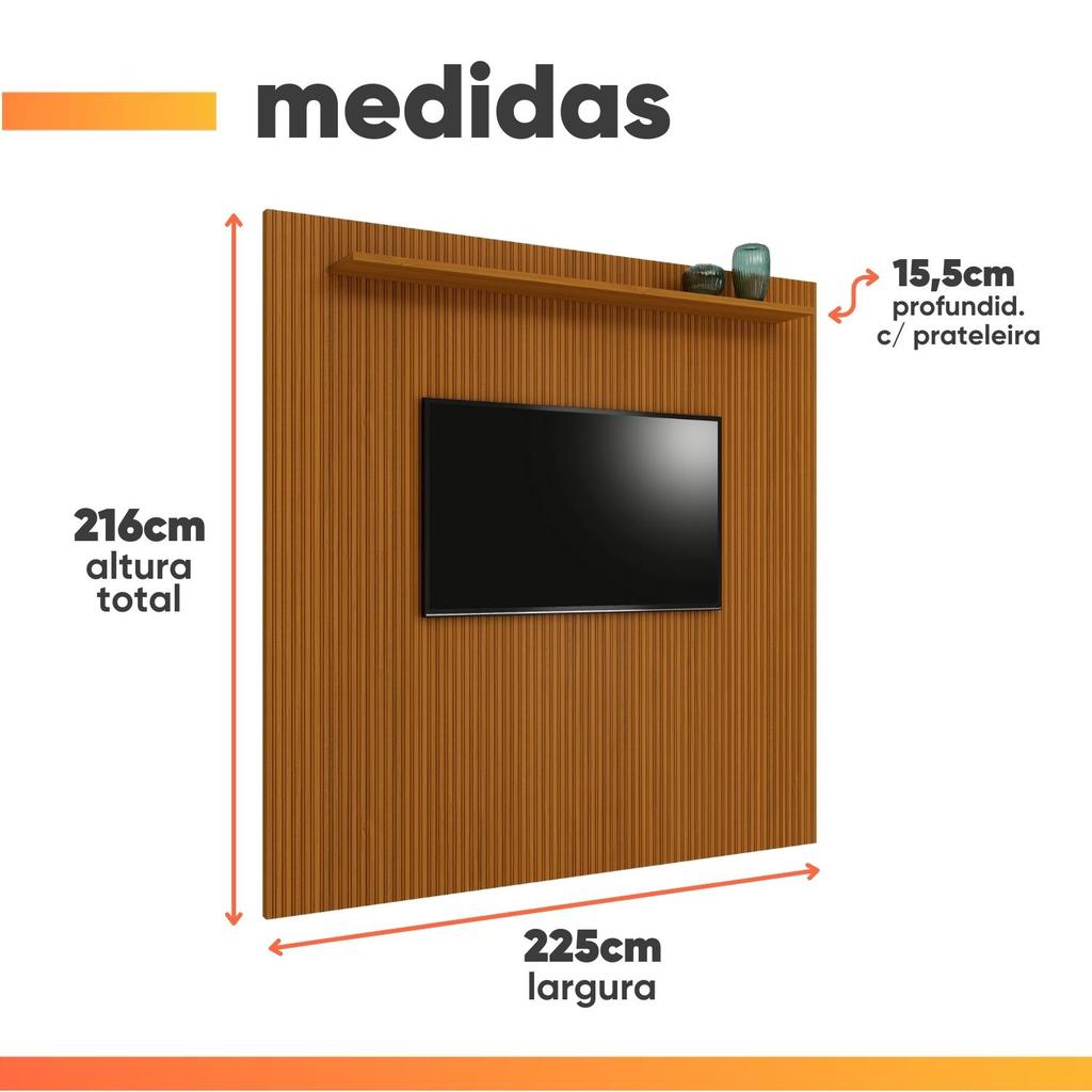 Painel Para Tv Até 75 Polegadas Ripado Impressão 3D Egeo Com Prateleira 2,25m Cedro EDN