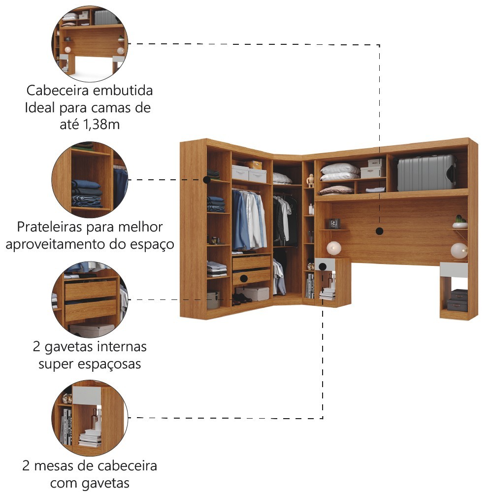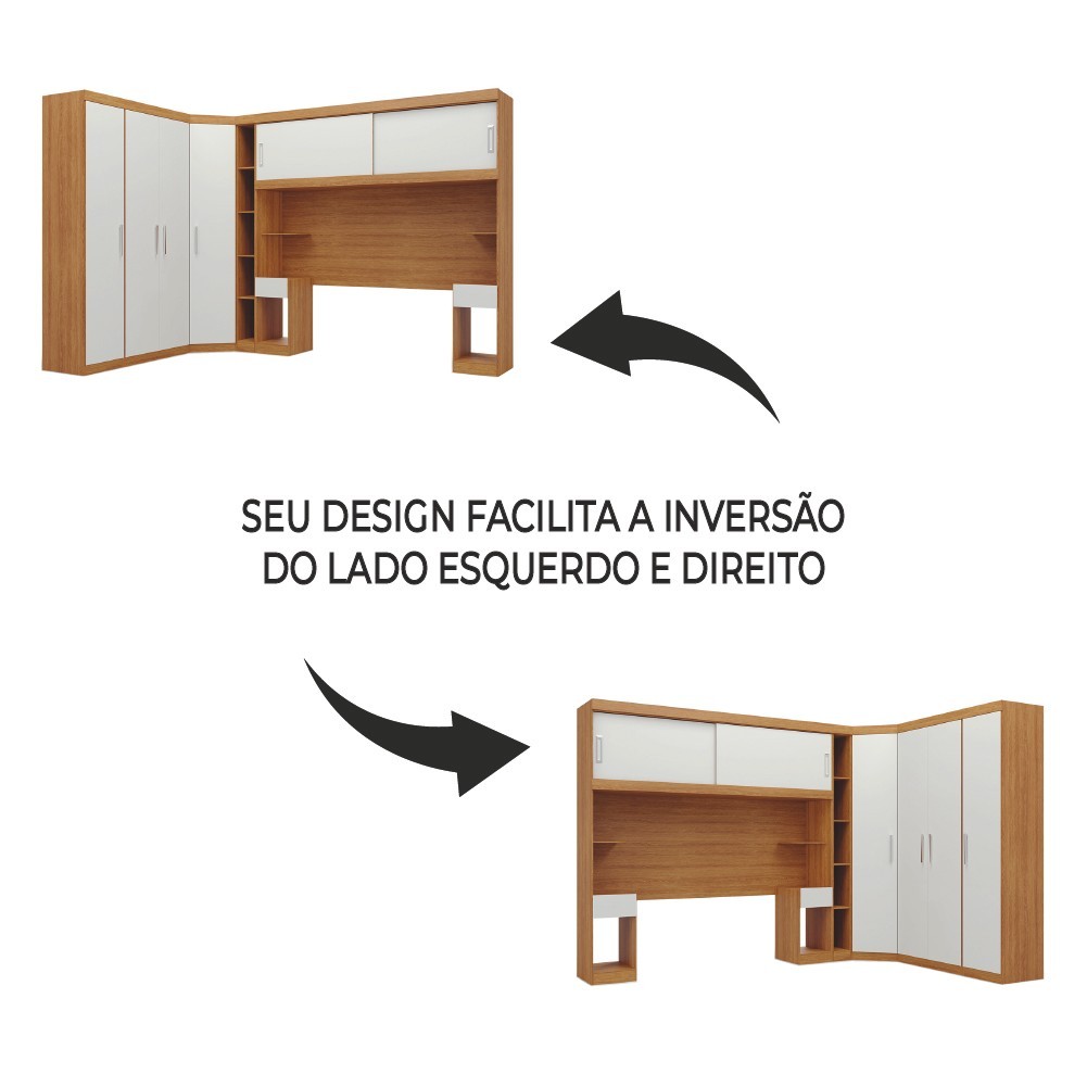 Guarda Roupas Modulado Com Cabeceira de Casal 1,38m Genova Plus 6 Portas 4 Gavetas Freijó/Off White Batrol