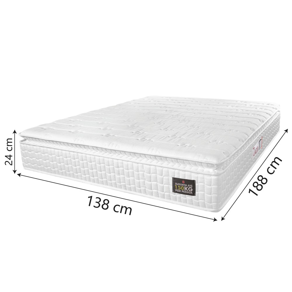 Colchão Casal Espuma D45 Lazio Pillow Top 138x188x24cm Branco Hellen - Suporta Até 150 Kg Por Pessoa
