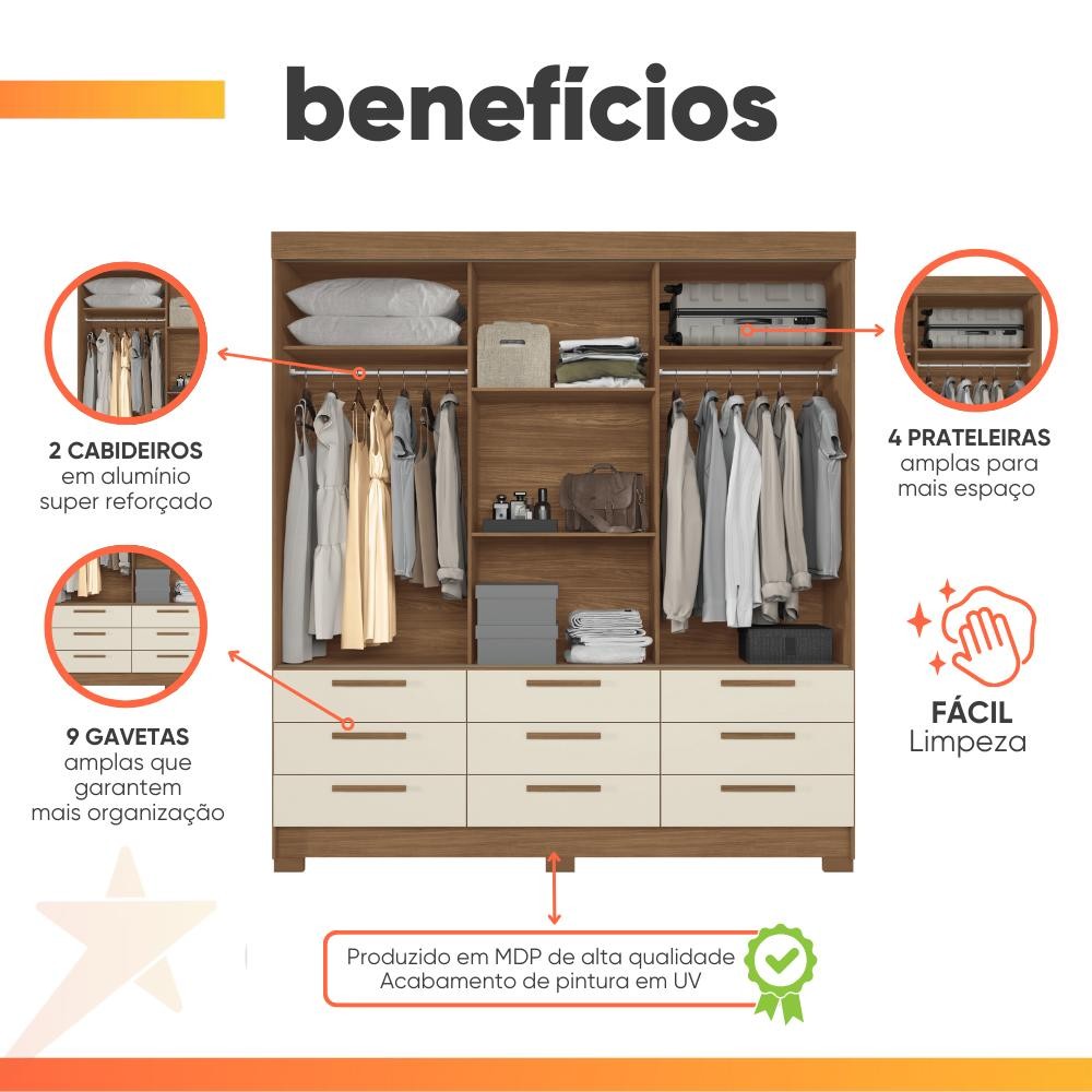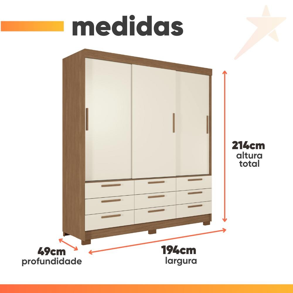 Guarda Roupas Casal 3 Portas 9 Gavetas Uraí Andirá