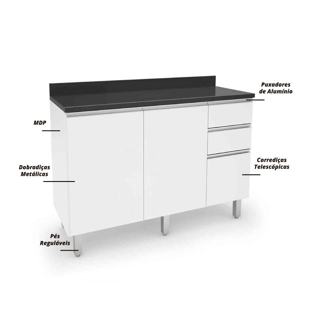 Balcão de Cozinha e Lavanderia 1,20m Top Class Branco