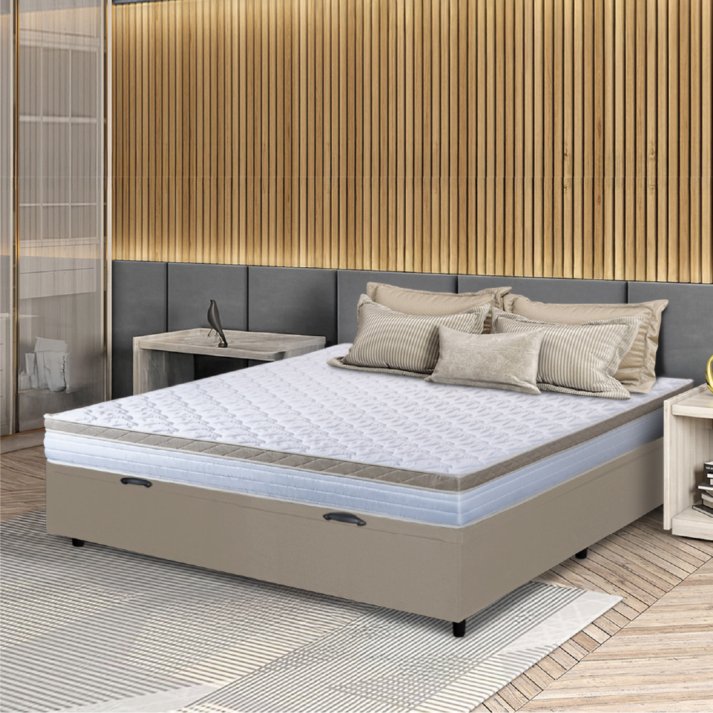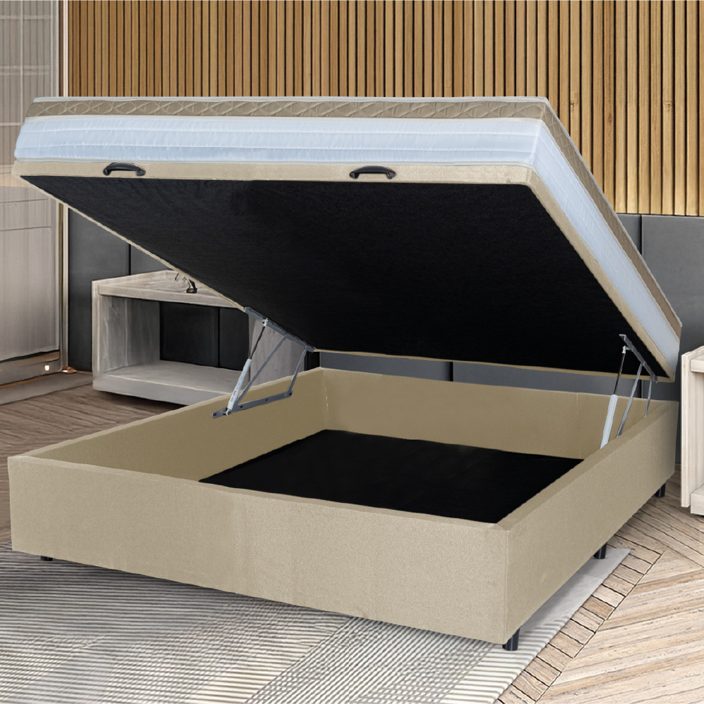 Cama Box Baú Casal Colchão Com Molas Ensacadas 138x188x63cm Dunas Branco/Bege Hellen