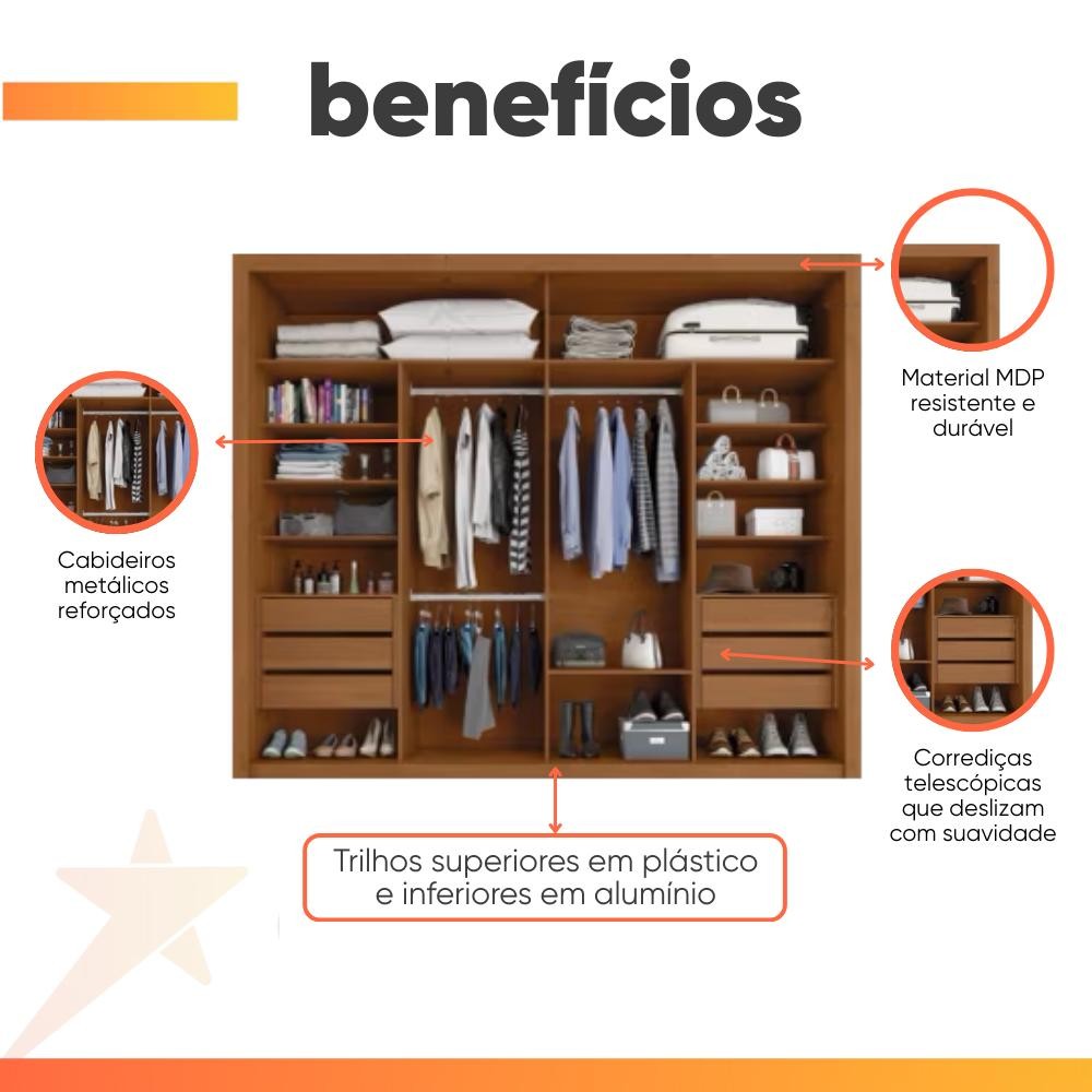 Guarda Roupas Casal 2 Portas de Correr 6 Gavetas Imperador Zanzini