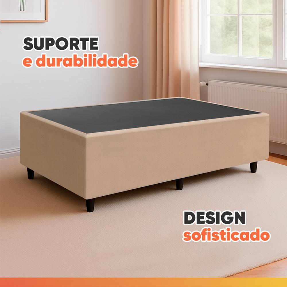 Base Cama Box 79x198x38cm Bege Suede Veludo Prince