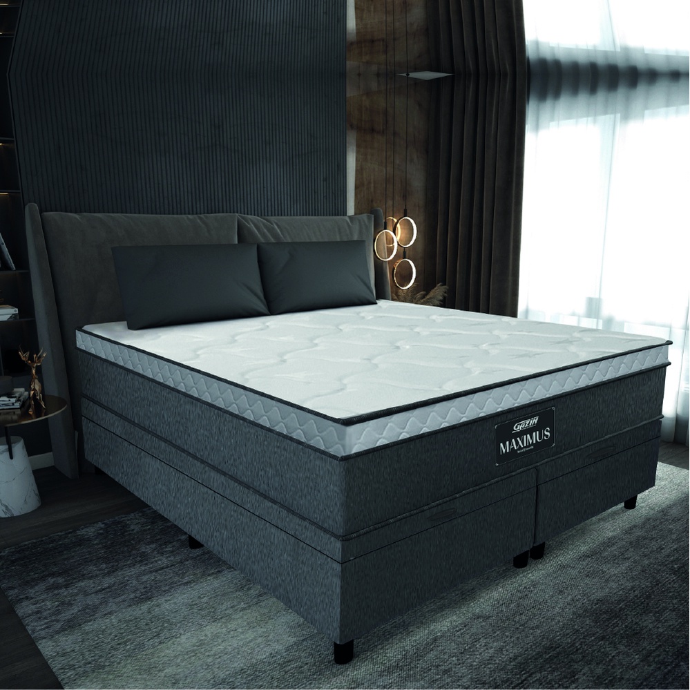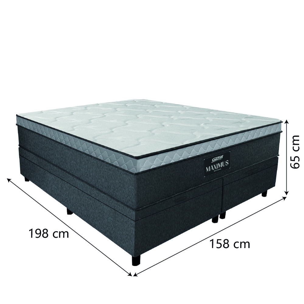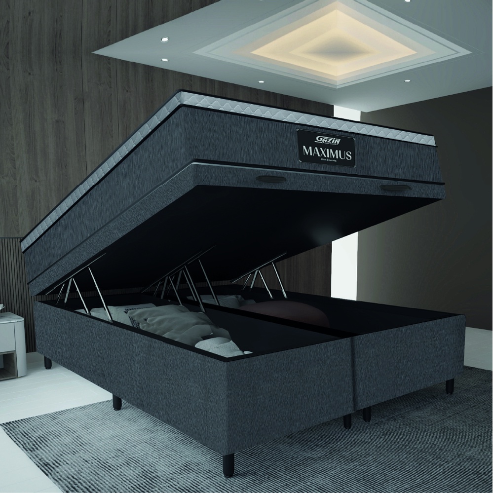Cama Box Baú Casal Queen Colchão Gazin Maximus Molas Ensacadas 158x198x65cm Linho Grafite / Preto