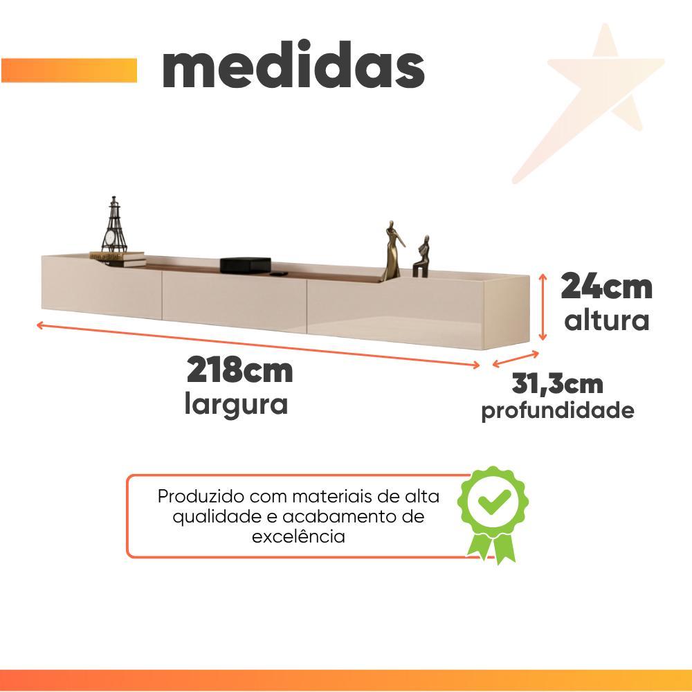 Rack Suspenso para Painel ou TV até 75 Polegadas 2,18m 3 Gavetas Efraín Off White