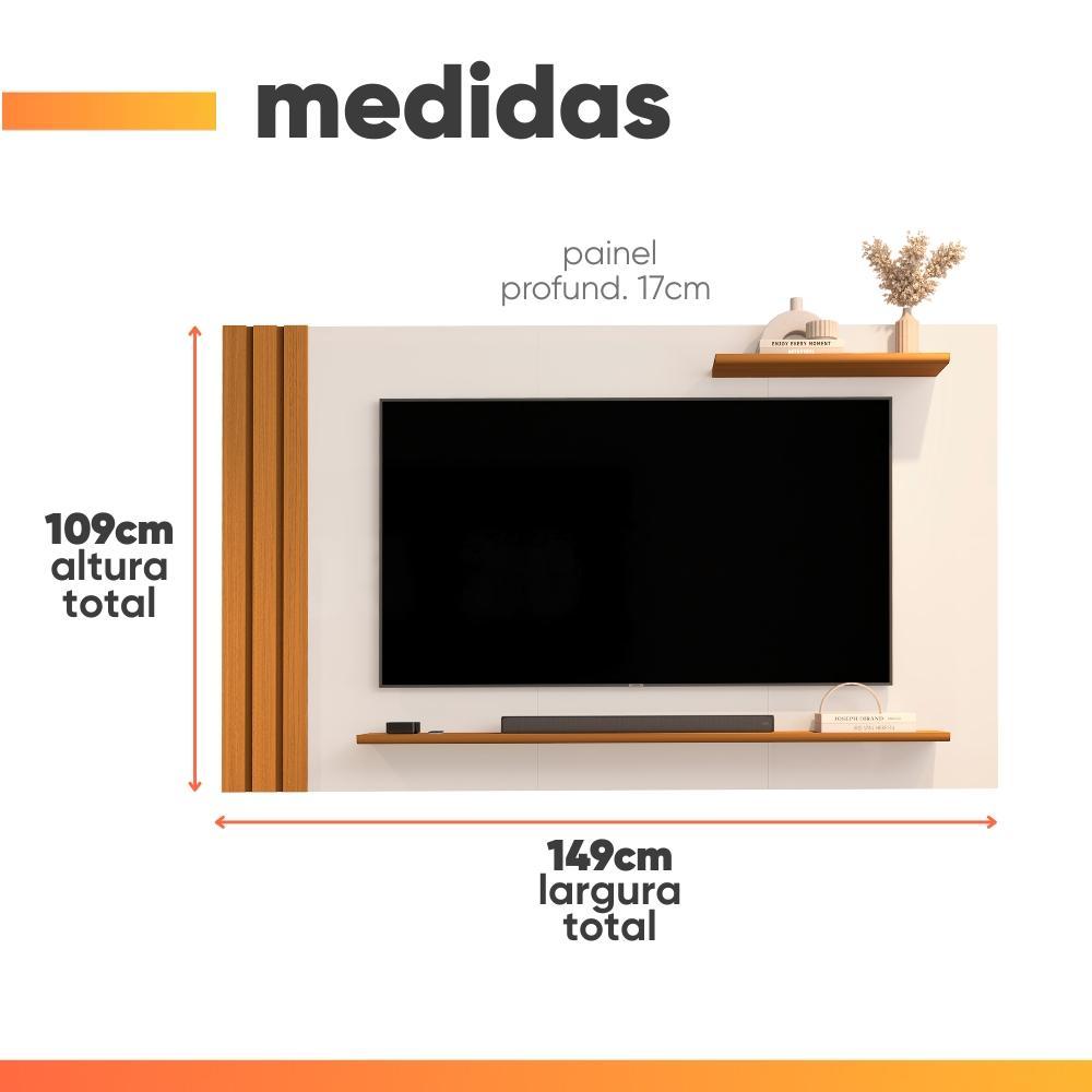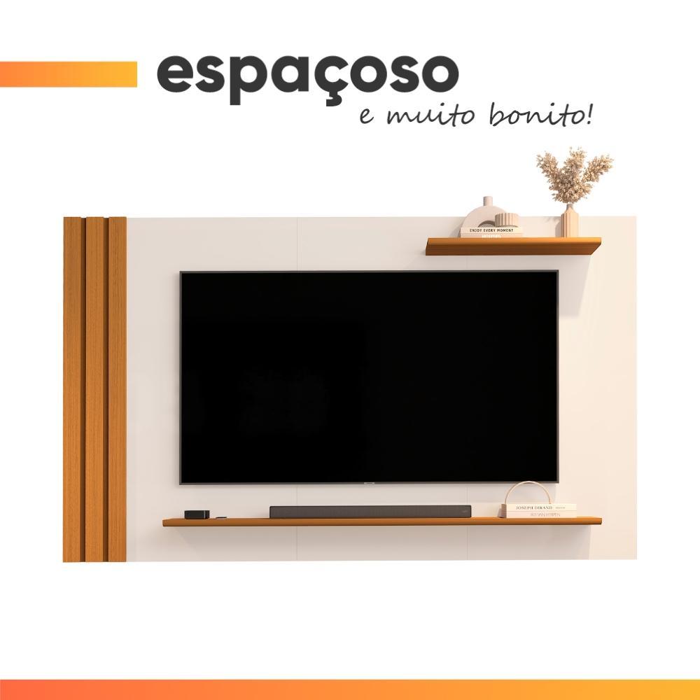 Painel Para TV Até 55 Polegadas Detalhe Ripado Com Prateleiras Aden Off White/Madeirado