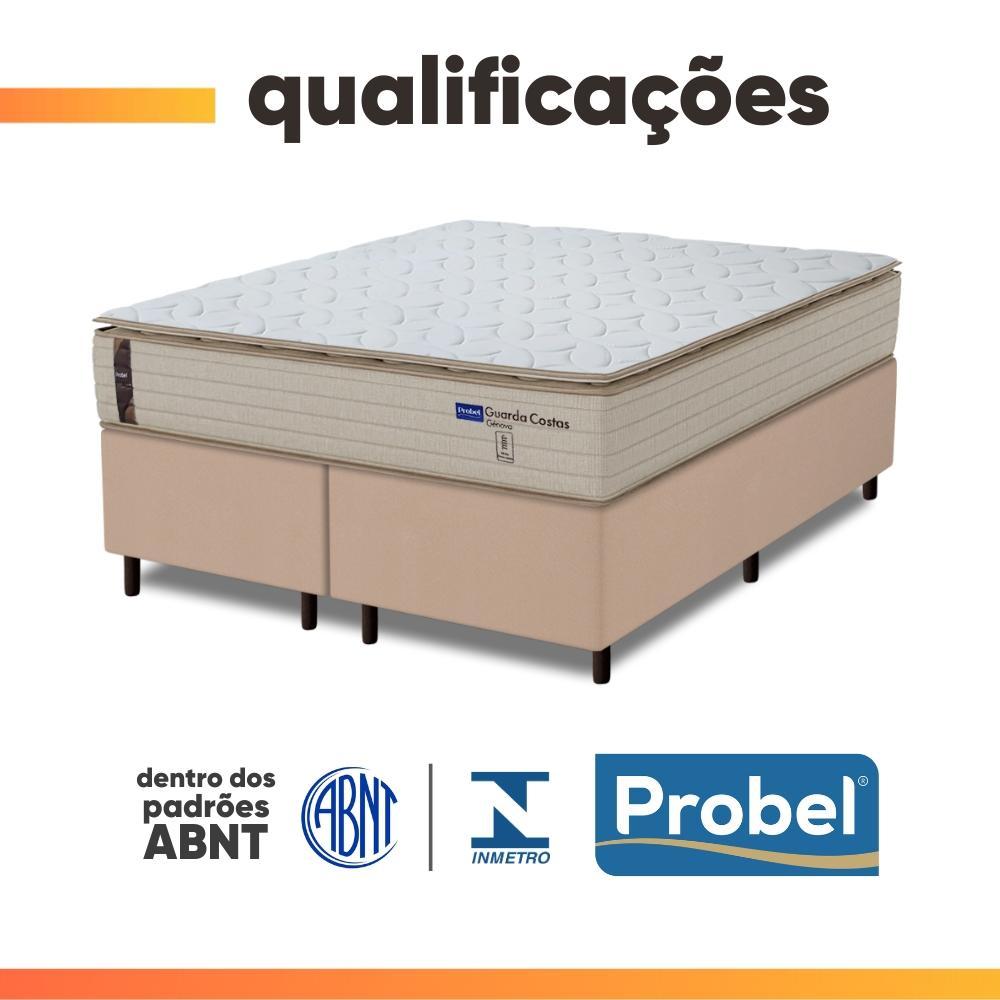 Cama Box Queen Probel Molas Ensacadas Pillow Top 158x198x68cm Guarda Costas Genova Branco/Bege