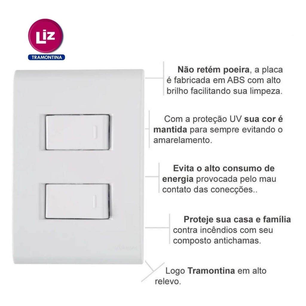 Conjunto 4x2 2 Interruptores Simples 10A 250V Liz Tramontina
