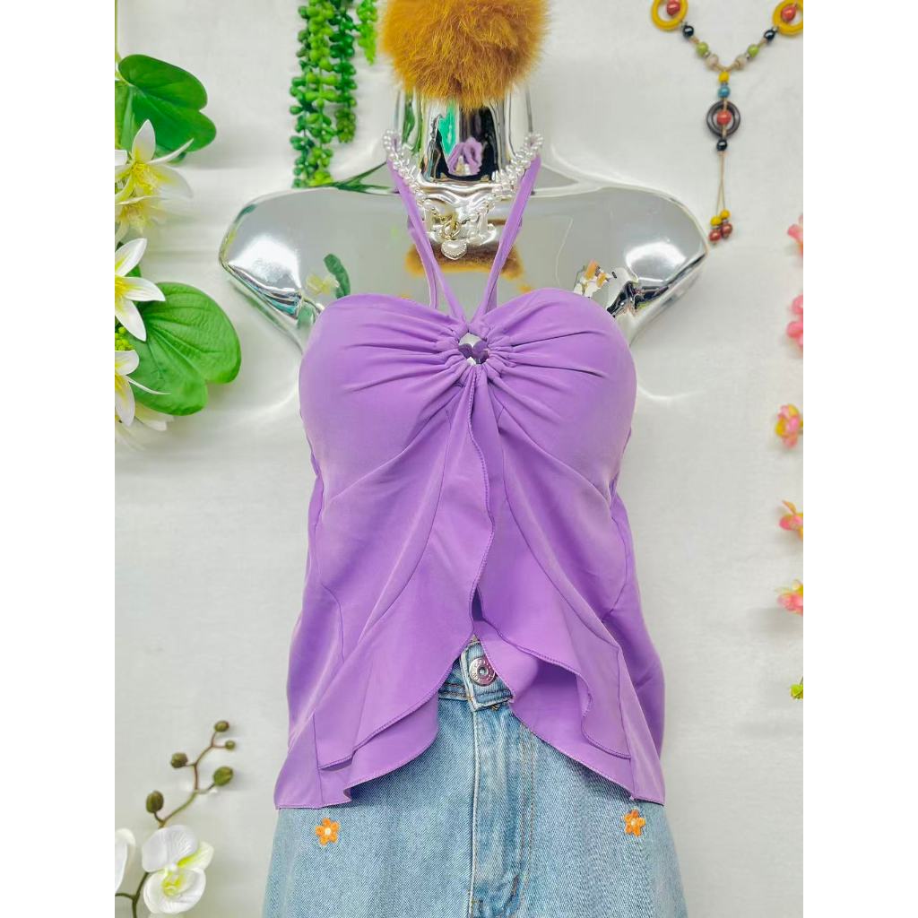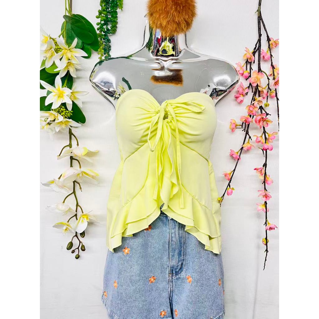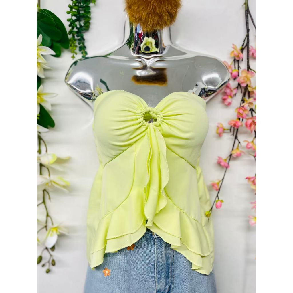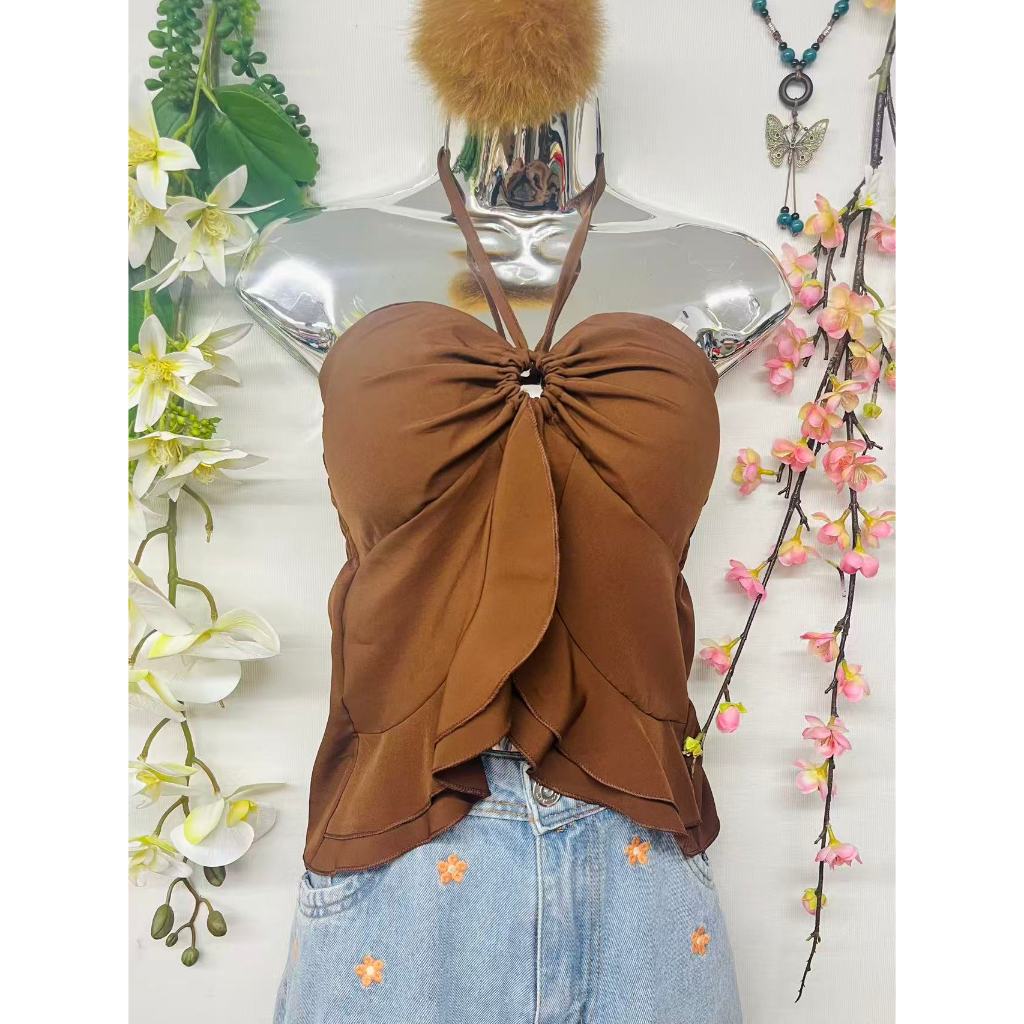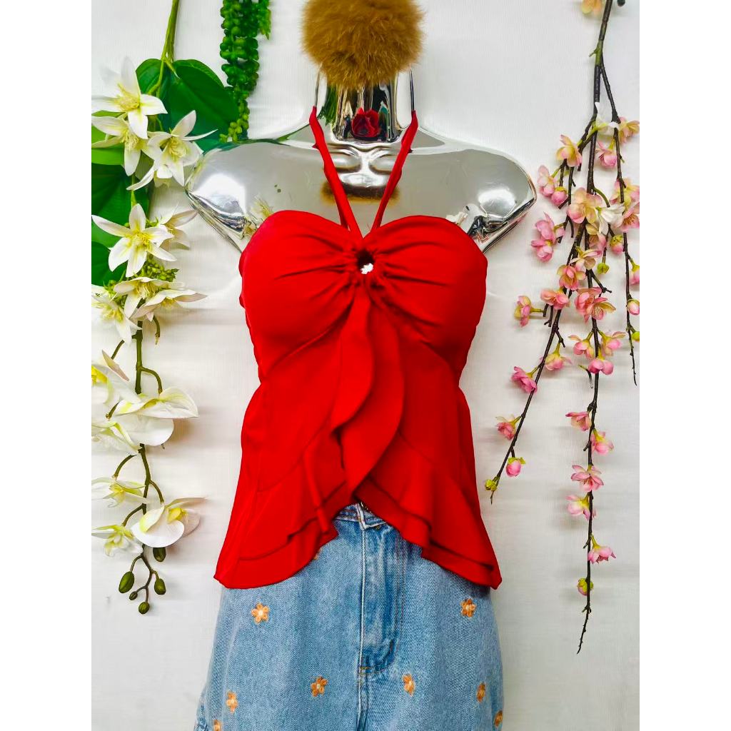 T106Blusinha Cropped Borboleta Feminina Amarracao Pescoco Elegante