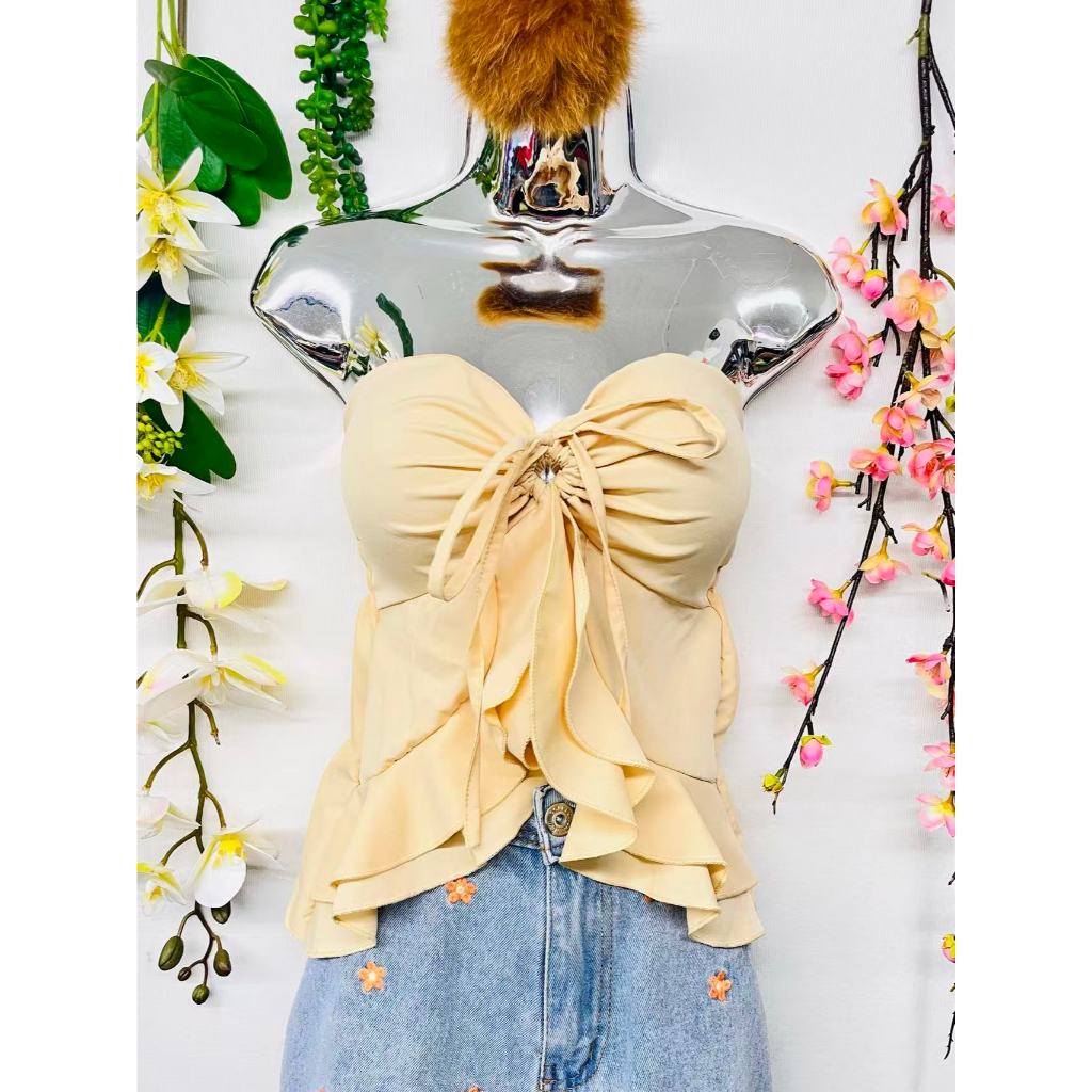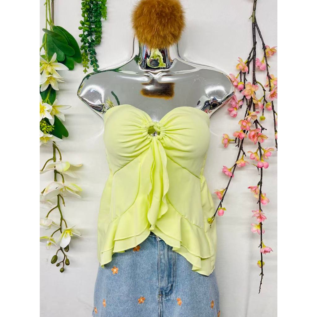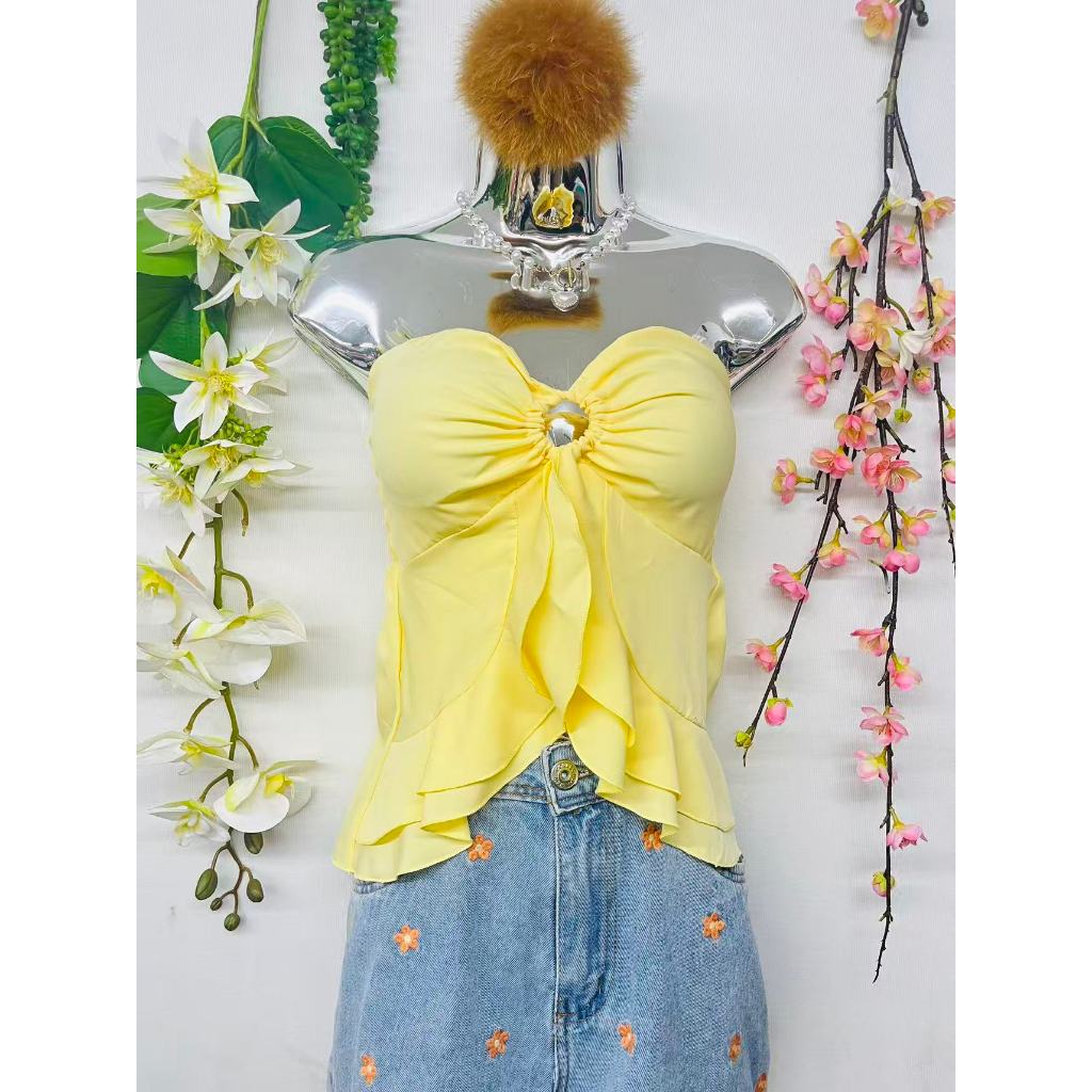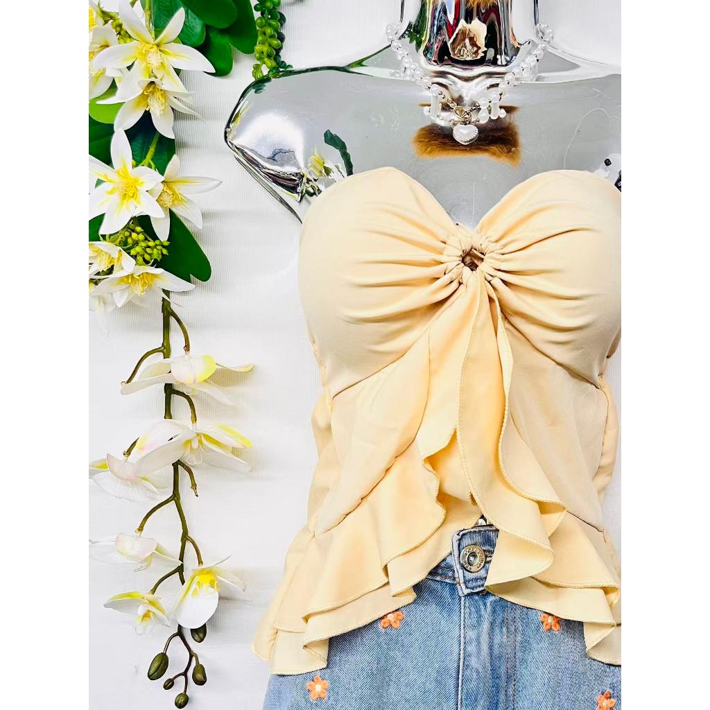 T106Blusinha Cropped Borboleta Feminina Amarracao Pescoco Elegante