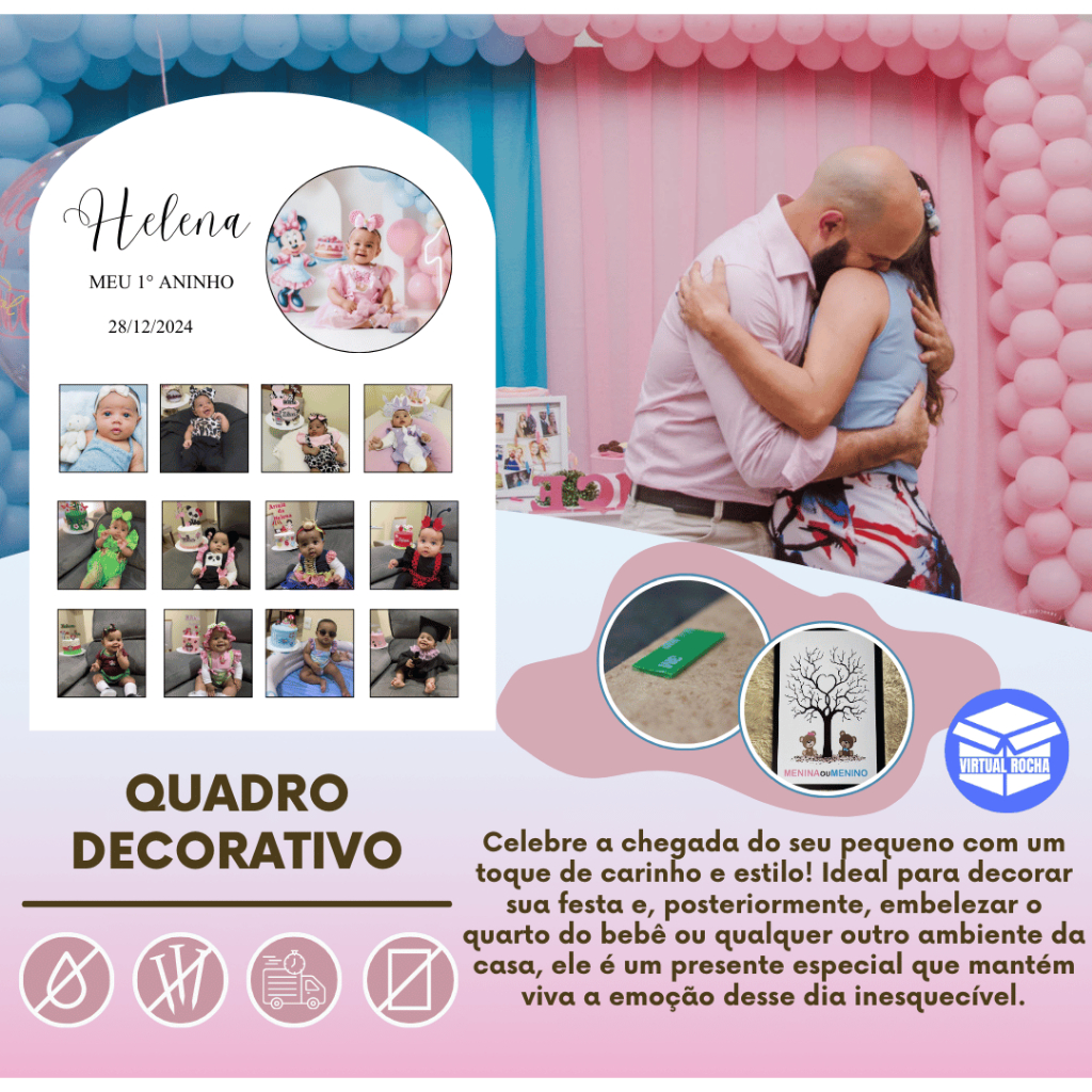 Quadro Decorativo Placa Ponta Arredondada 13 Fotos Personalizado Criança MDF