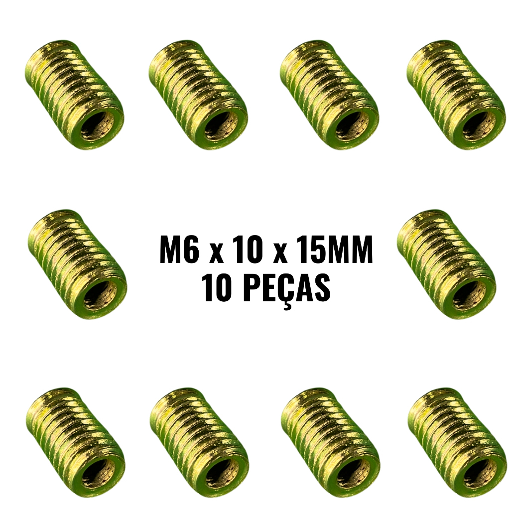 Kit Tucho Bucha Rosca Postiça De M6 X 1,0 E M10 X 1,50 15mm