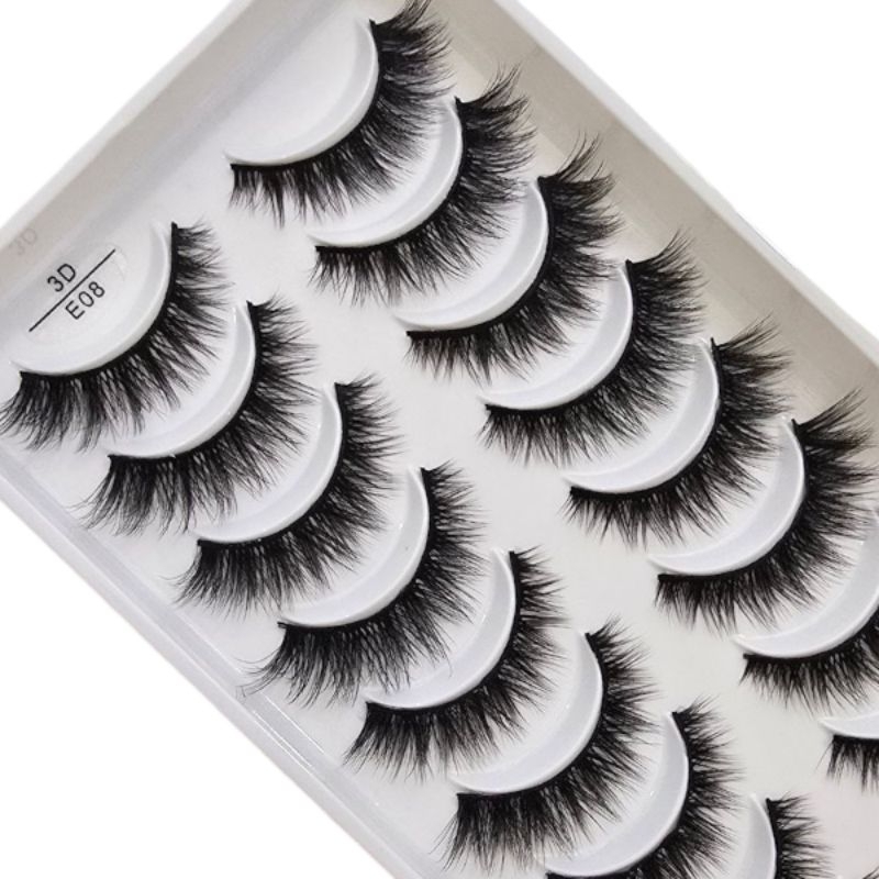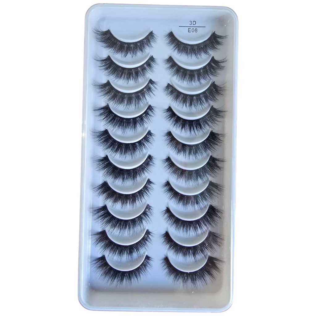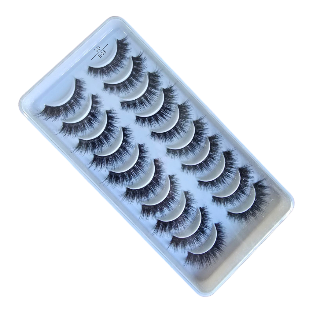 Cartela 10 Pares Cílios Postiços E08 Maquiagem Mink Imediato