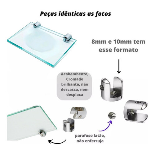04 Suportes Fenda Para Vidro 10mm Botão Fenda Metal Zamak