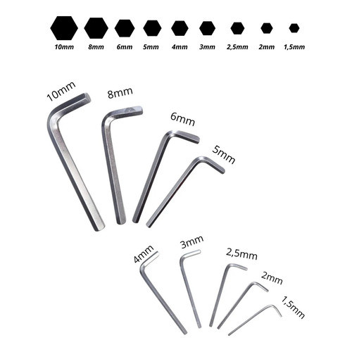 Kit Jogo de Chaves Allen Hexagonais Curta Sem Furo 1.5 A 10mm L Motores Bicicletas