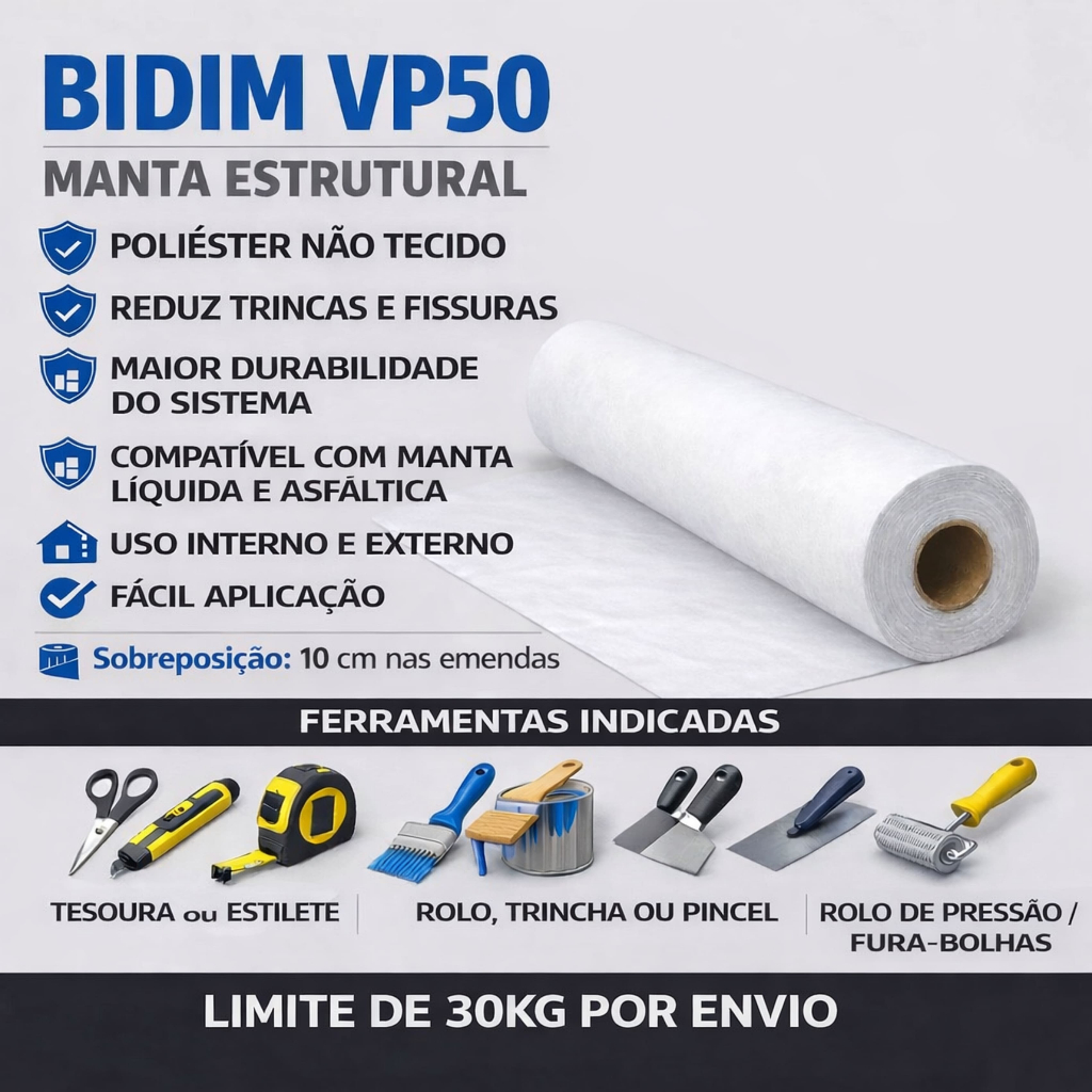 MANTA BIDIM 100M VP50 PARA TELHADO LAJE COM GOTEIRA TRINCAS IMPERMEABILIZAÇÃO REFORÇO MANTA LÍQUIDA