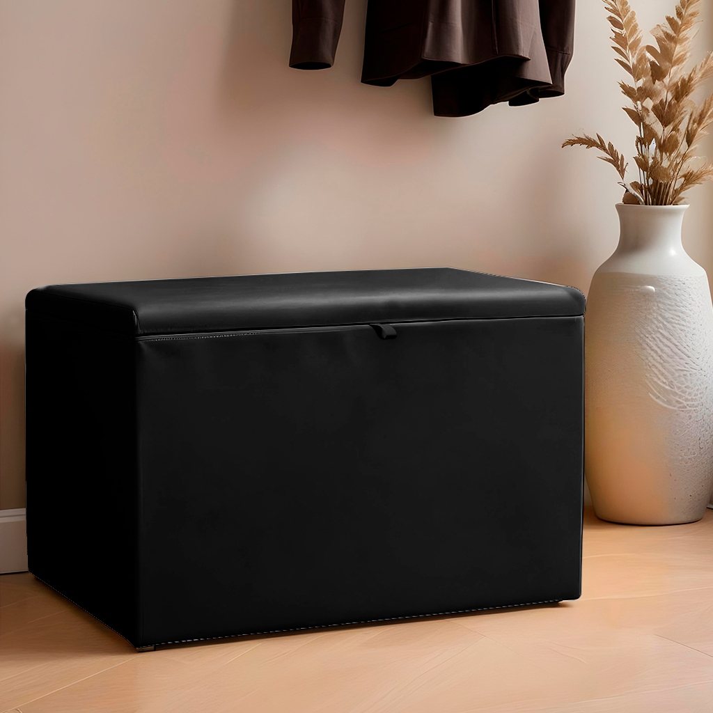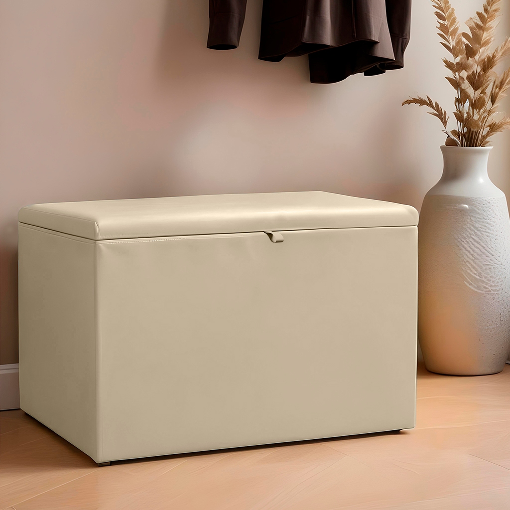 Baú Médio 55x32x40cm em Couro Sintético Liso - Várias Cores