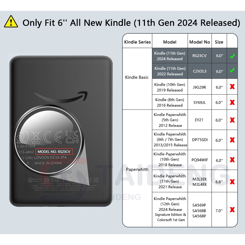 Capa Para Kindle 11ª geração 2024 2022 RS23CV C2V2L3 6.0'' Transparente E-Reader anti-queda de acrílico