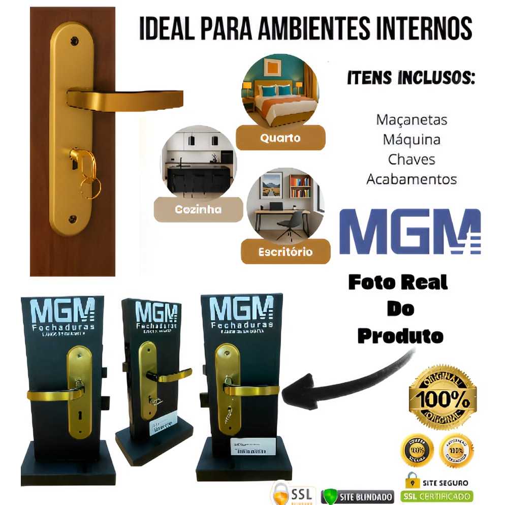 Fechadura De Porta Externa/Interna Stilo Bronze Latonado – Segurança Máxima e Acabamento de Alto Padrão. MGM