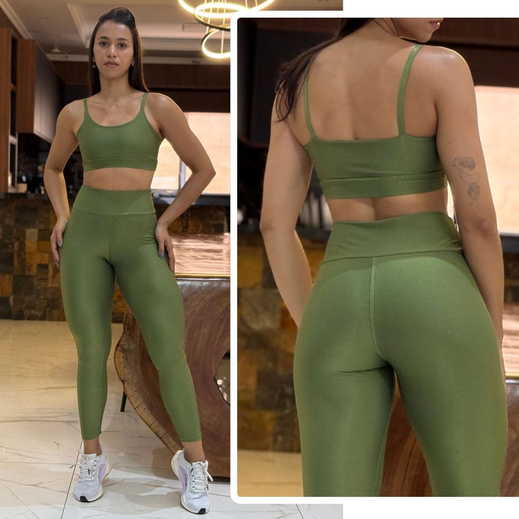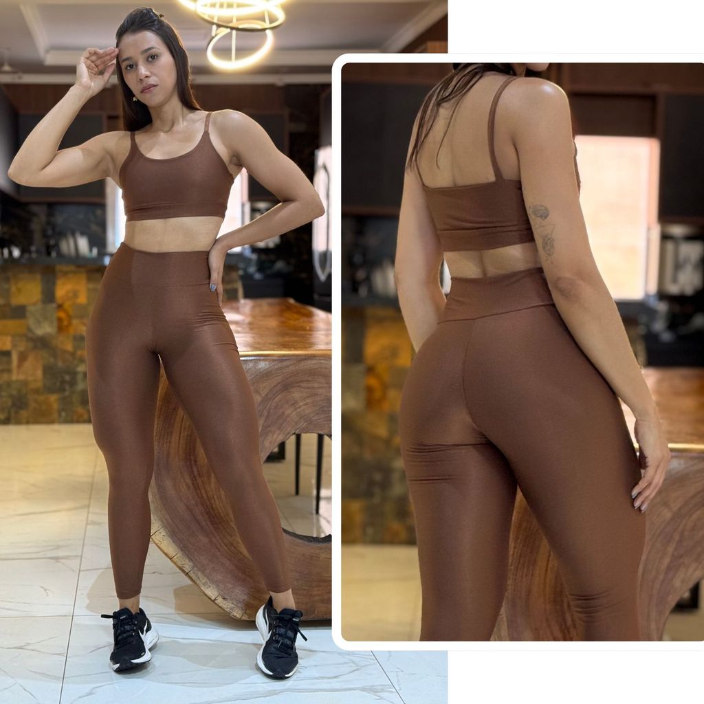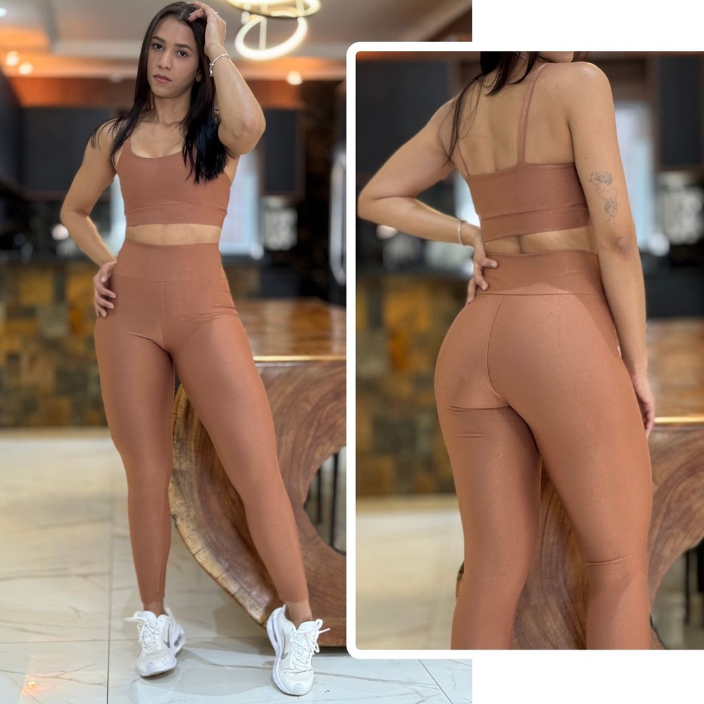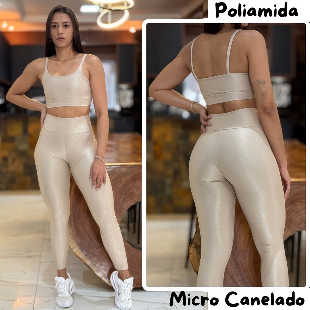 Conjunto Academia Feminino Poliamida Micro Canelado Zero Transparência Cintura Alta