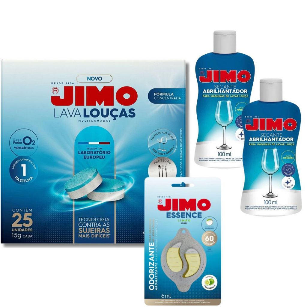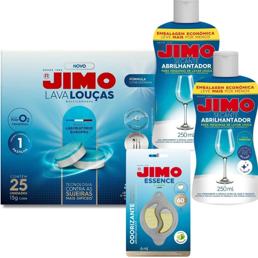 Monte seu Kit Jimo (Lava-Louças + Secante + Essence + Lava-Máquinas) | Escolha o Seu Combo Perfeito! +BRINDE NOS AVULSOS