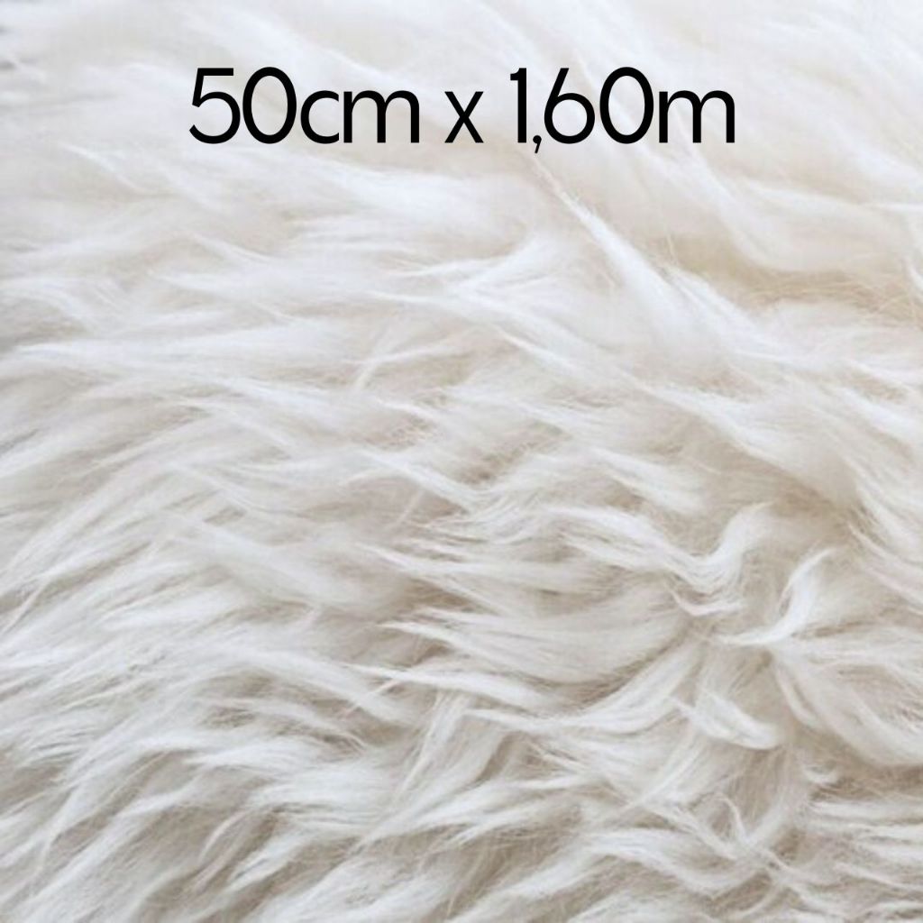 Tecido Pêlo Alto para Barba de Papai Noel - Cor Branca - Lã Sintética