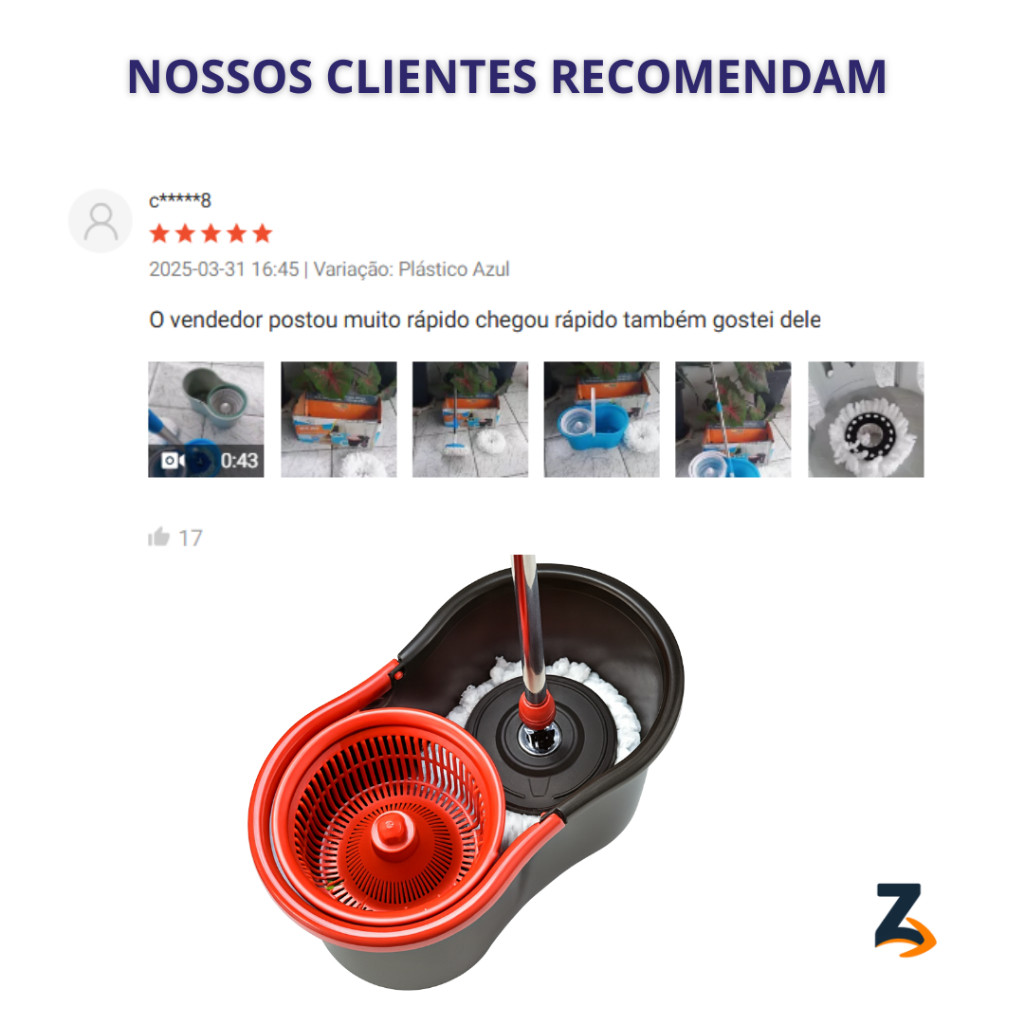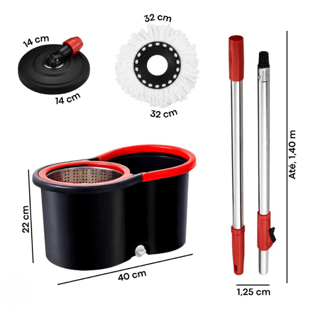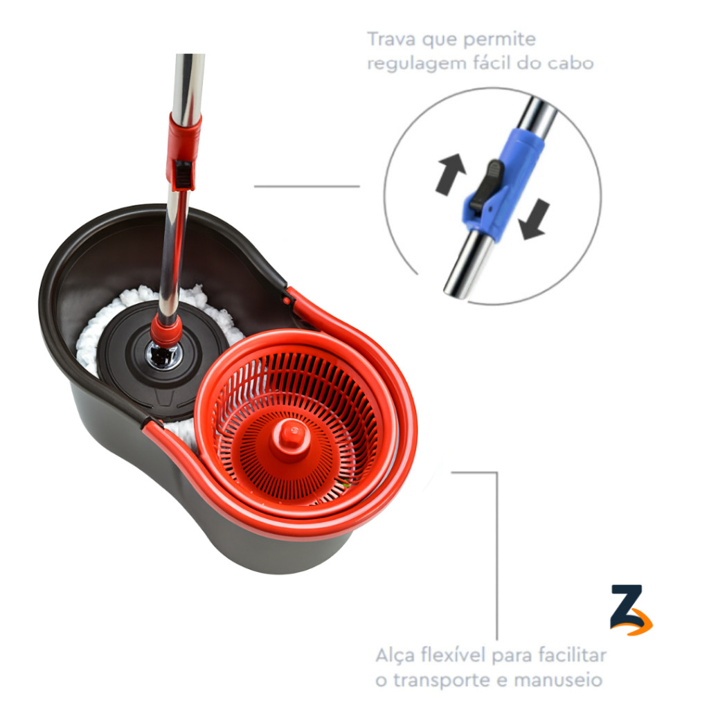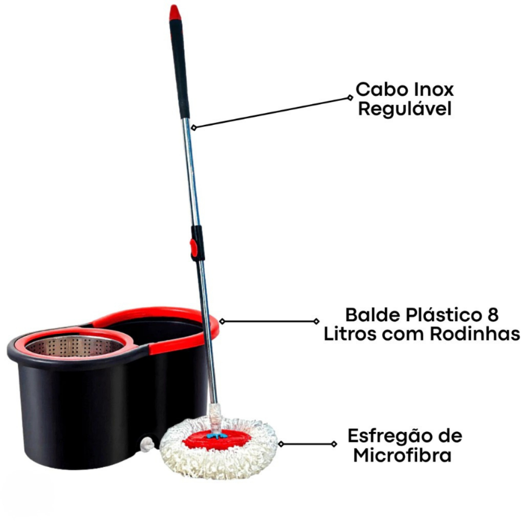 Mop Giratório Cabo Grande de 120 cm 8 Litros Cesto Em Inox e Plástico - Balde Centrífuga Preto