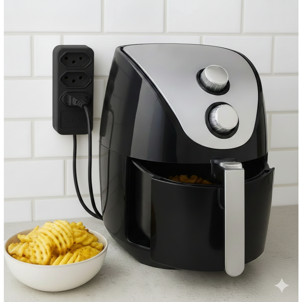 Extensão Elétrica Reforçada 20A 3 Tomadas Bivolt – Para Airfryer, Micro-ondas e Secador 1m 2m 3m