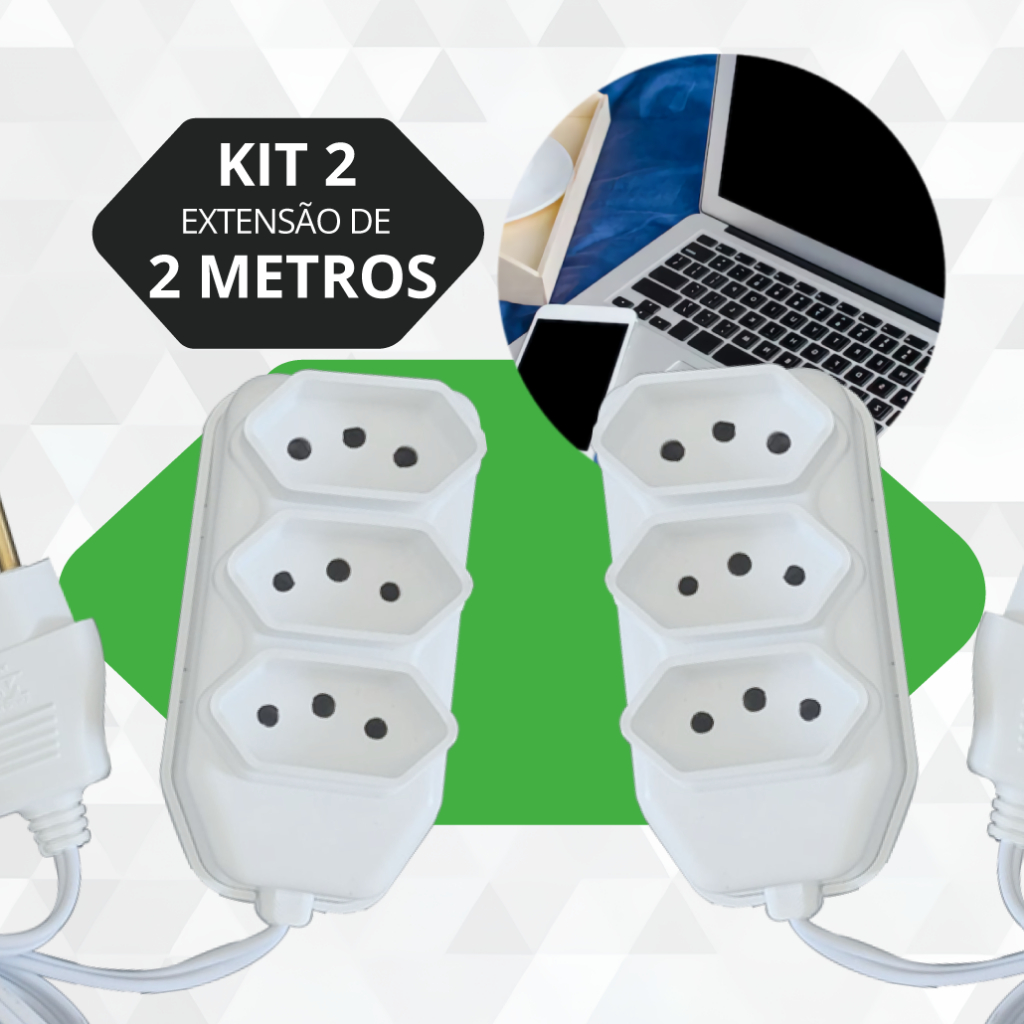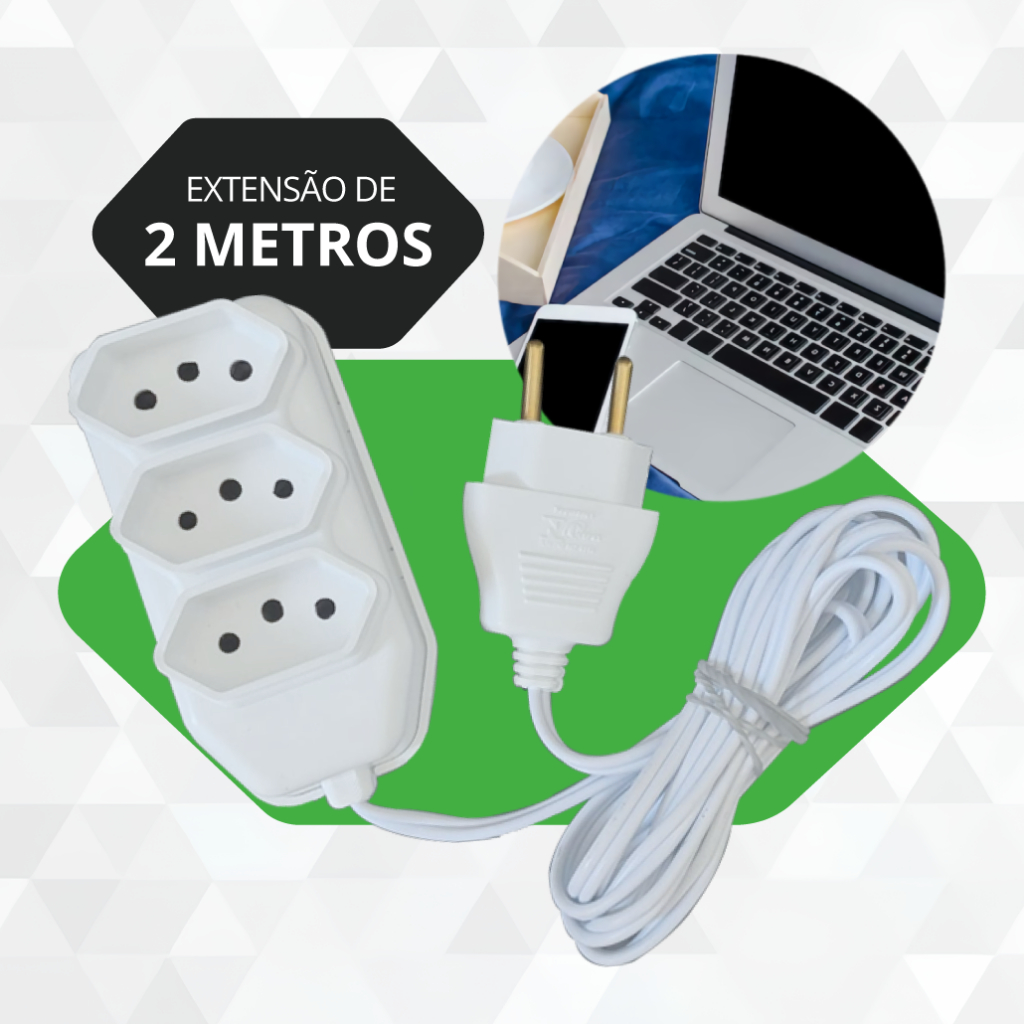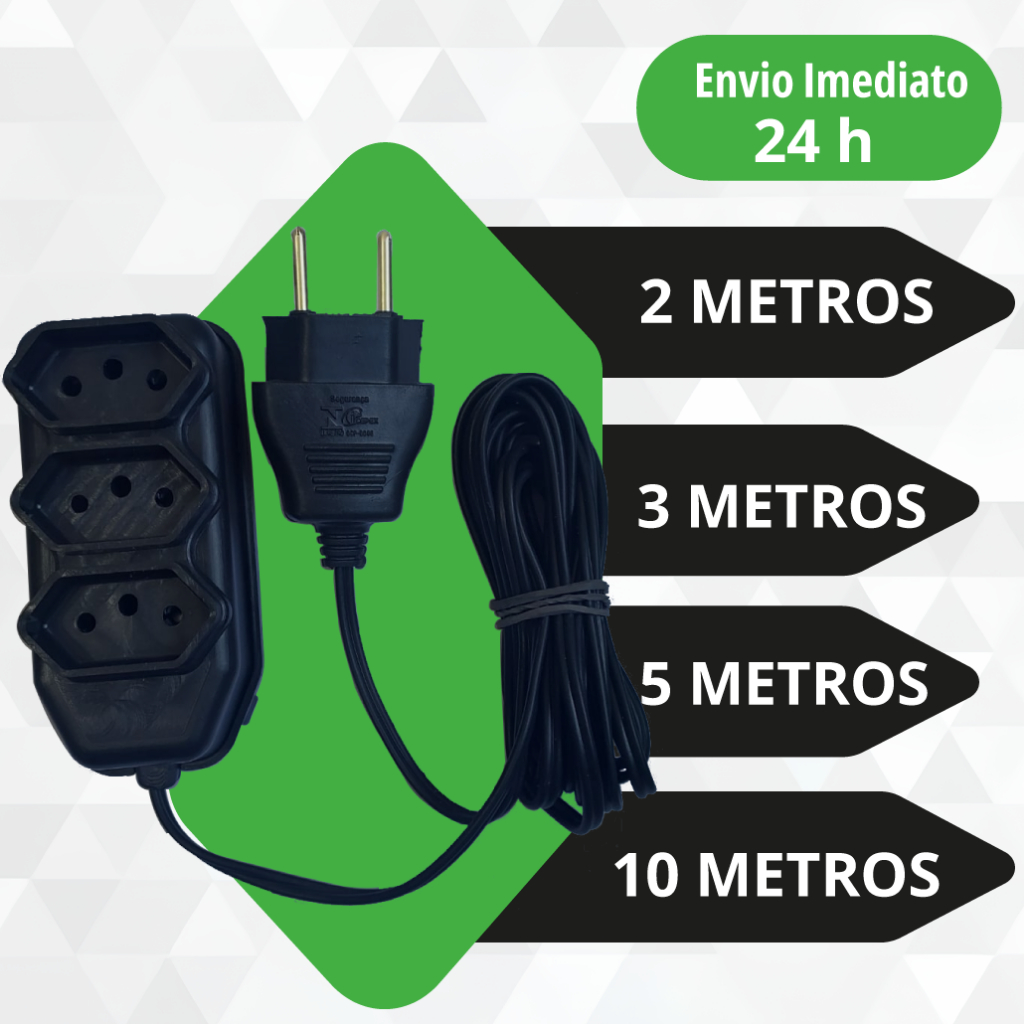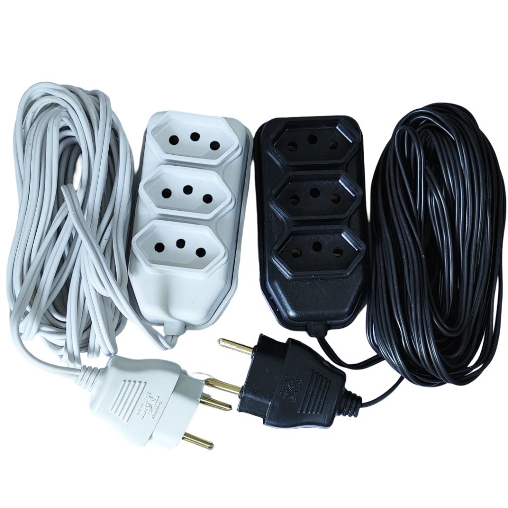 Extensão Elétrica 2, 3, 5, 10 Metros Branca e Preto Extensão Tomadas Compacta